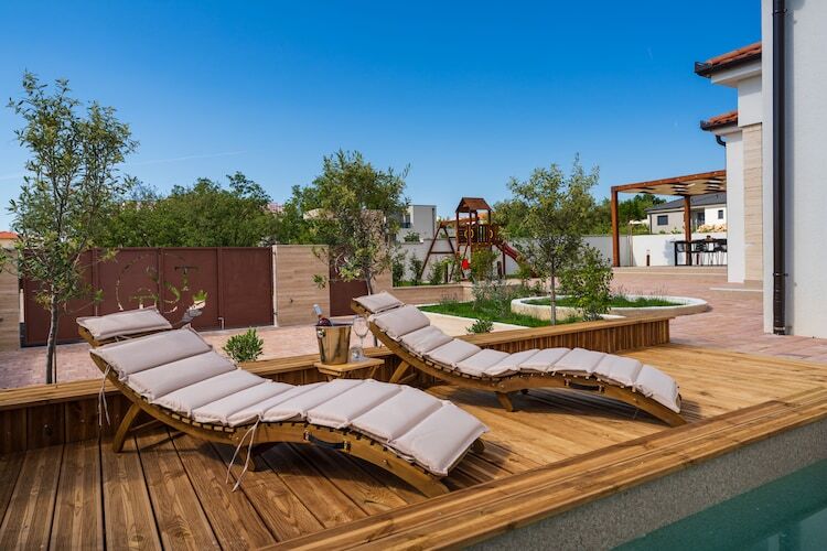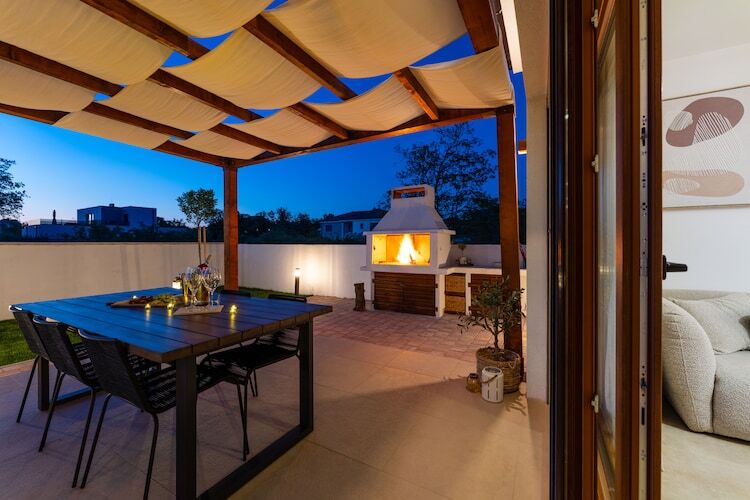 Nichée dans un coin résidentiel paisible juste à l'extérieur de Zadar, cette retraite moderne allie un design élégant à une atmosphère chaleureuse et accueillante. La villa dispose de trois chambres élégantes, chacune avec sa propre salle de bain et sa télévision, créant ainsi un cadre idéal pour accueillir jusqu'à six personnes. Le spacieux salon ouvert s'ouvre naturellement sur une cuisine entièrement équipée et une salle à manger lumineuse, tandis que de grandes portes vitrées s'ouvrent sur une terrasse ensoleillée. À l'extérieur, une piscine privée de 8 × 4 m vous invite à vous détendre sous le ciel méditerranéen, entouré de chaises longues confortables, de parasols et d'un coin repas extérieur idéal pour de longs repas tranquilles avec vos proches.