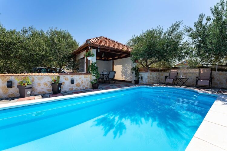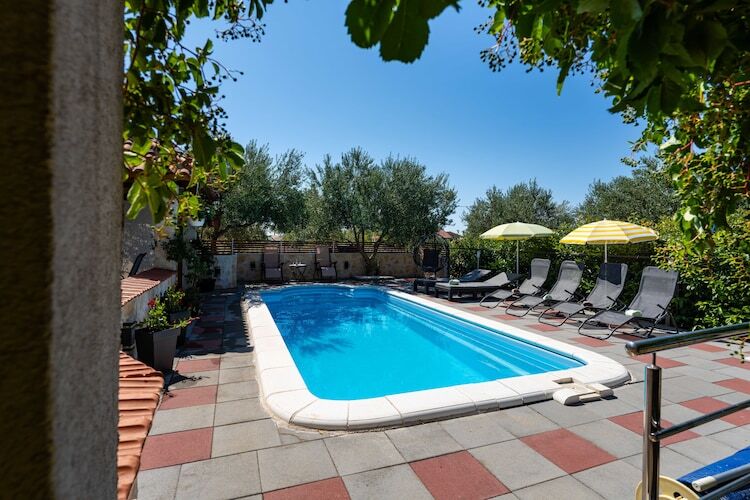 Nichée dans la campagne paisible près de Šibenik, cette charmante maison de vacances est le refuge idéal pour ceux qui recherchent le repos, le soleil et une touche de vie dalmate authentique. Entourée d'oliviers et du chant des oiseaux, c'est un endroit où le temps ralentit et où les journées sont remplies de plaisirs simples : café du matin sur la terrasse, baignade dans la piscine et soirées tranquilles sous les étoiles.