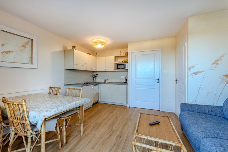 La maison dispose d'une chambre lumineuse et d'un salon confortable qui s'ouvre sur une terrasse meublée, un endroit idéal pour prendre votre café du matin ou un verre en soirée tout en admirant la vue sur la mer. À l'intérieur, la cuisine est entièrement équipée avec tout ce dont vous avez besoin, y compris un réfrigérateur, un four à micro-ondes, une bouilloire et une cafetière. Que vous prépariez un petit-déjeuner léger ou un dîner simple après une journée à la plage, vous vous sentirez facilement comme chez vous ici.