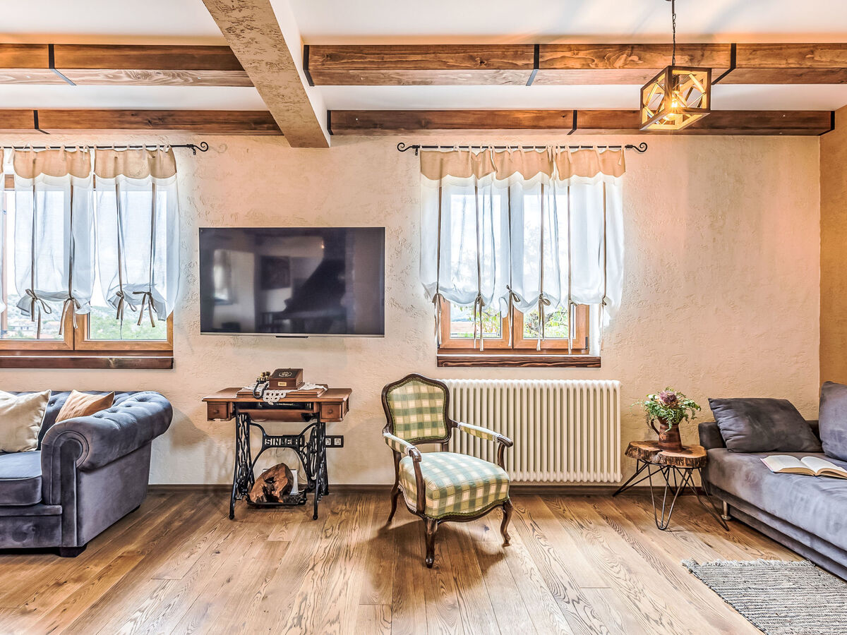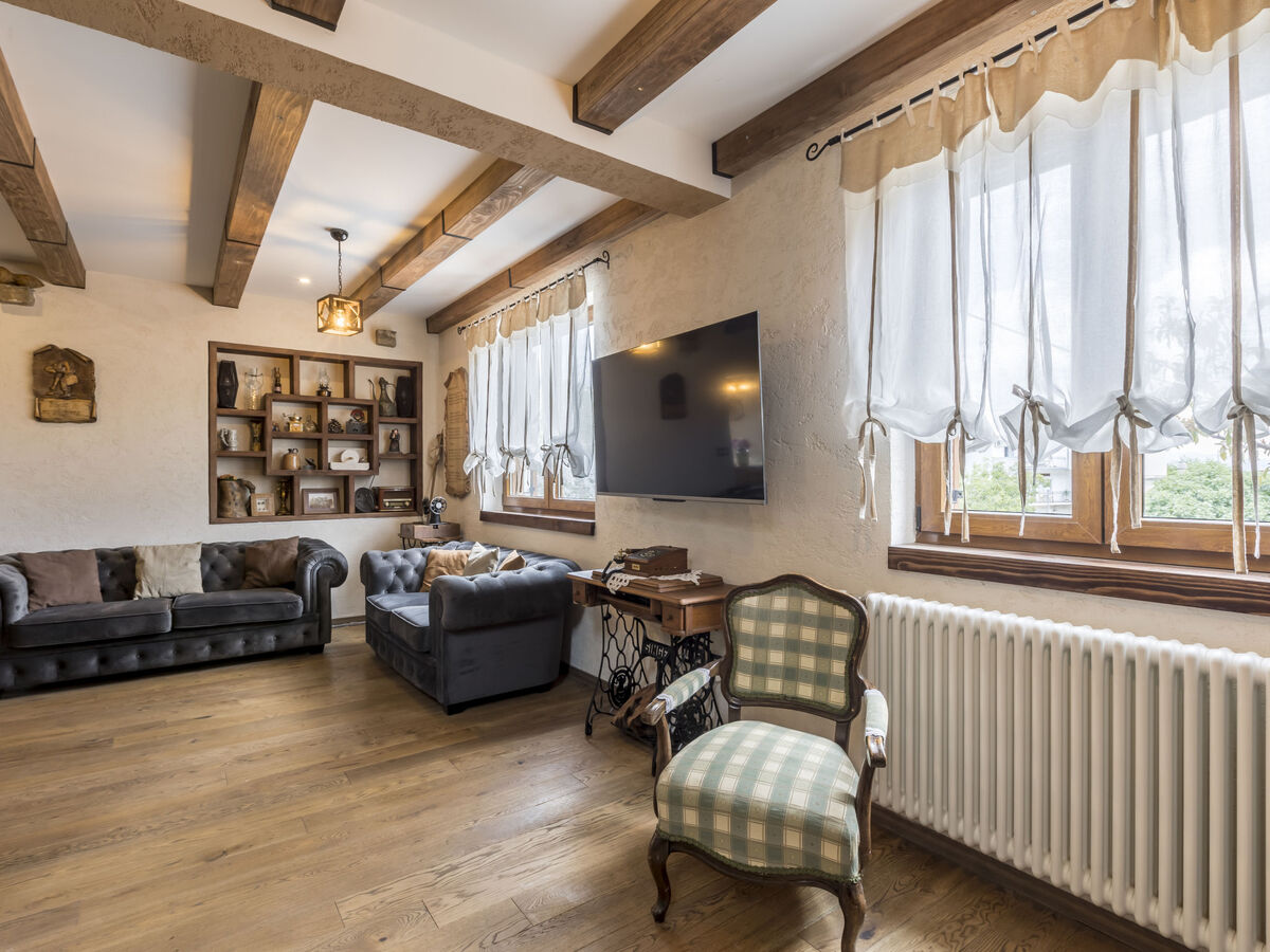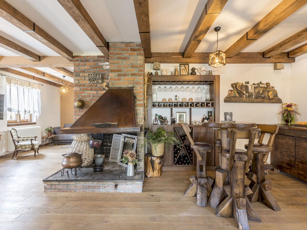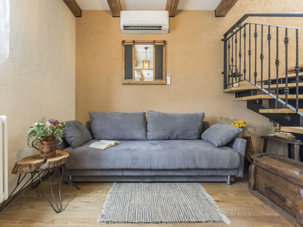À l'étage supérieur: séjour/salle à manger 45 m2 avec TV (satellite) et air-conditionné.