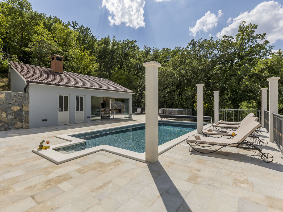 A usage privé: terrain 500 m2 (clôturé), piscine rectangulaire (24 m2, disponibilité saisonnière: 01.Mai.