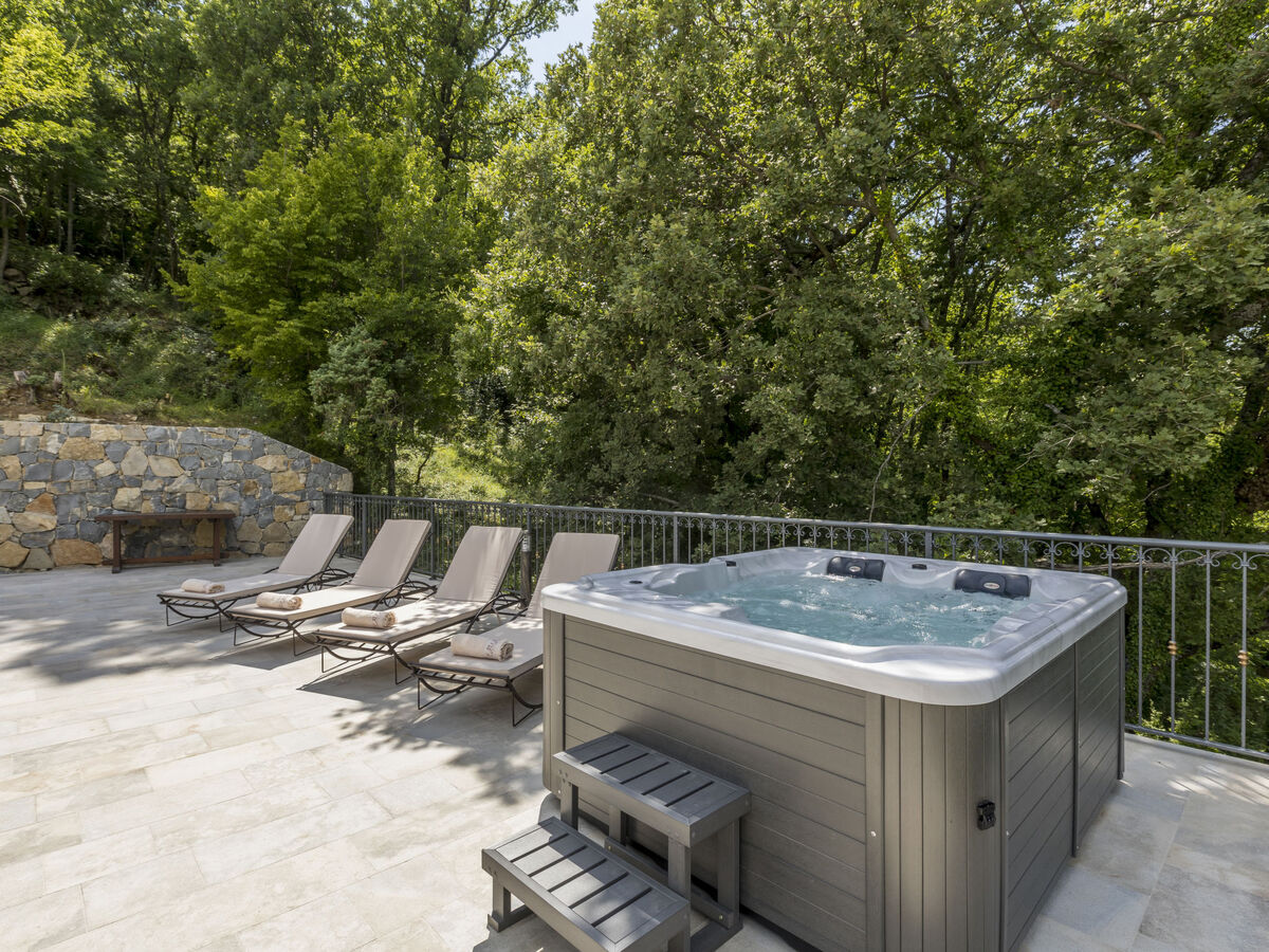 Douche extérieure, bain à remous , pool house avec réfrigérateur, douche, WC et plaque de cuisson, entretien de la piscine par le propriétaire/jardinier.