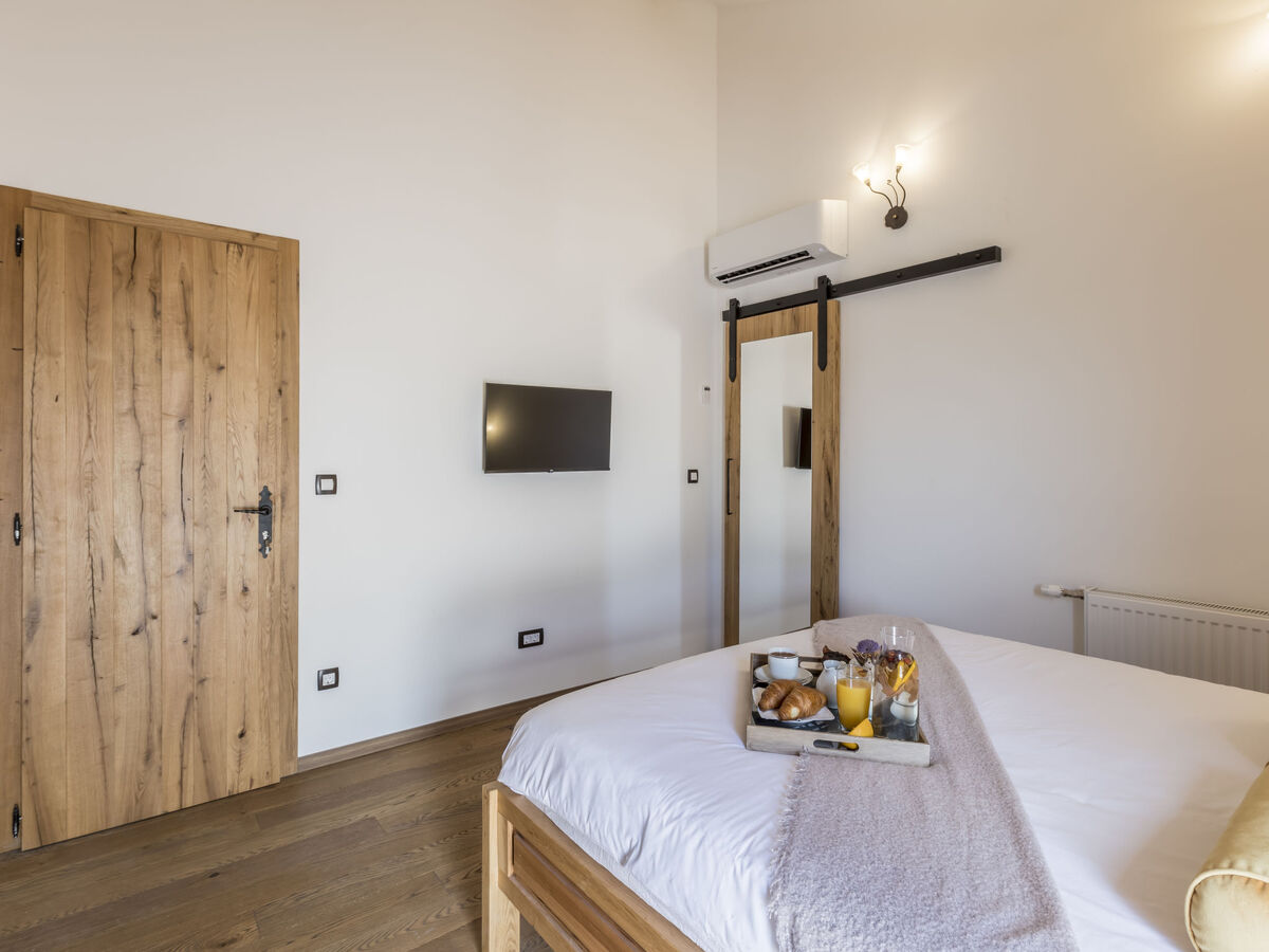1 chambre avec 1 grand-lit (160 cm, longueur 200 cm), TV (satellite) et air-conditionné.