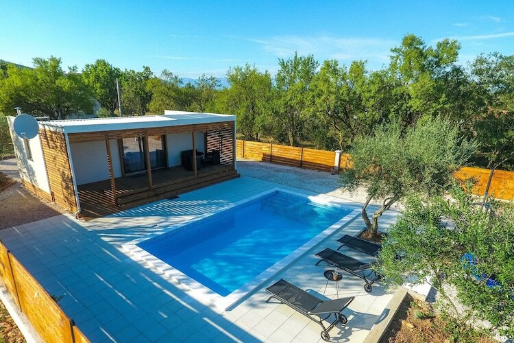 Cette maison de vacances paisible à Rastane Donje offre un havre de paix en pleine nature, à seulement 3 km de la plage la plus proche. L'espace extérieur spacieux comprend une piscine privée avec fonction d'hydromassage, un jardin clôturé planté d'oliviers et une aire de jeux avec un trampoline pour les enfants. Les clients peuvent également profiter d'une salle de bains extérieure supplémentaire avec douche, toilettes et lave-linge, ainsi que de deux places de parking privées.