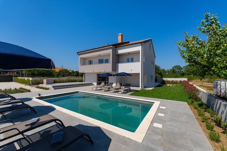 Cette élégante villa de vacances à Galovac offre un havre de paix à quelques minutes en voiture de la côte adriatique. Conçue dans un souci de confort et d'intimité, cette spacieuse propriété peut accueillir jusqu'à 10 personnes et dispose d'un agencement moderne et ouvert sur deux niveaux. Elle comprend notamment une piscine chauffée, un sauna relaxant et une charmante taverne en pierre pour se retrouver en famille ou entre amis.