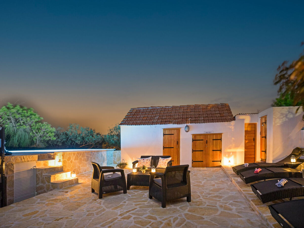 A usage privé: terrain 500 m2 (clôturé), piscine rectangulaire (6 x 3 m, 20 m2, profondeur 150 cm, disponibilité saisonnière: 15.Mai.