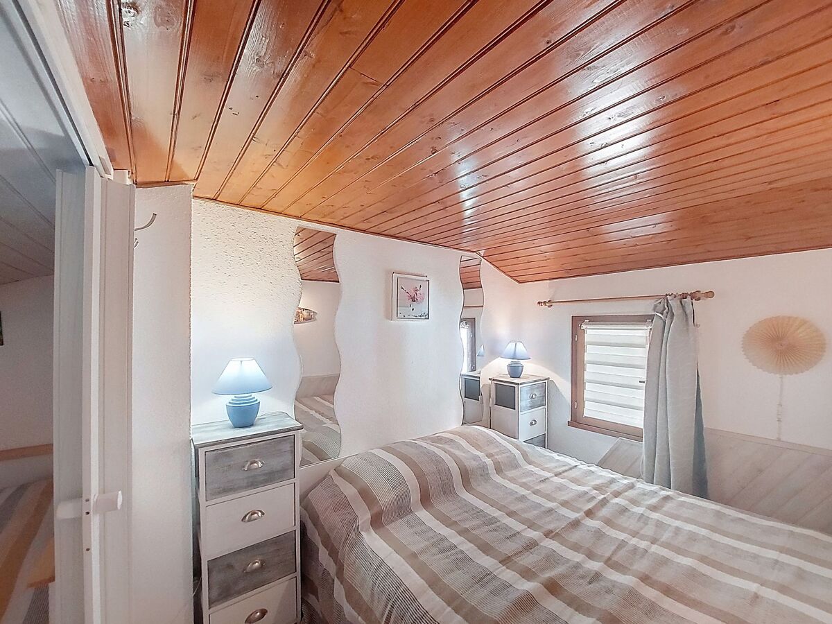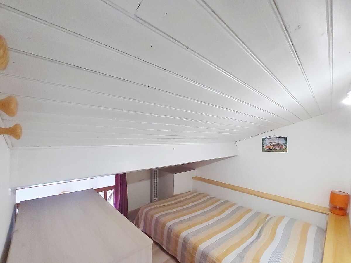 À l'étage supérieur: (escalier raide) galerie mansardée avec 1 lit (120 cm, longueur 190 cm), 1 grand-lit (1 x 140 cm, longueur 190 cm).