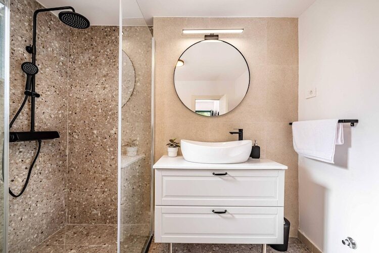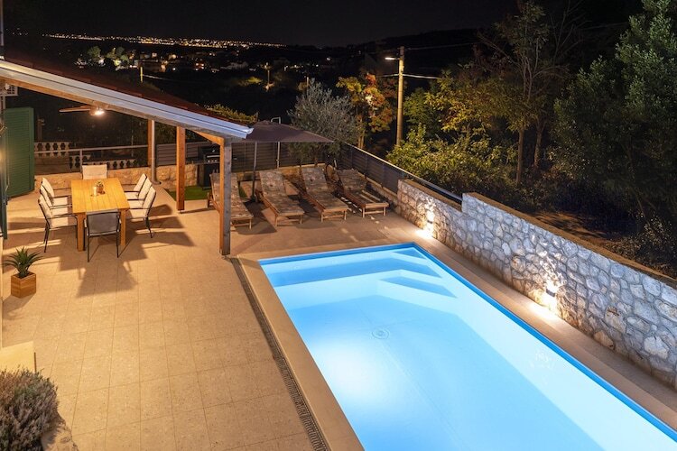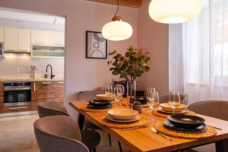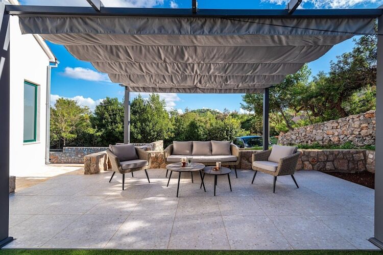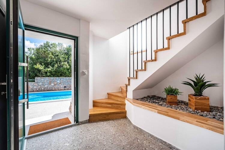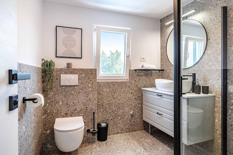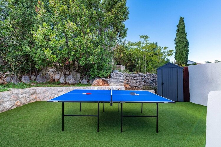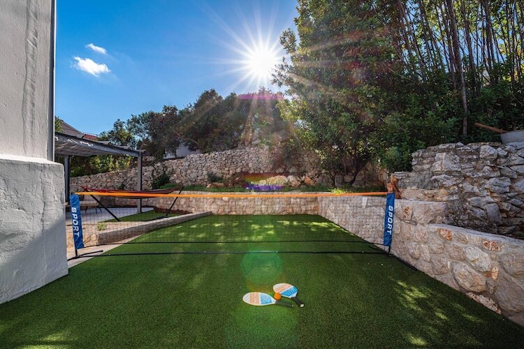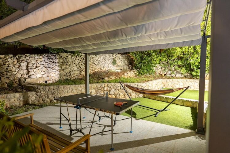 La villa dispose d'un salon et d'une salle à manger lumineux et ouverts, avec une cuisine entièrement équipée, trois chambres climatisées et deux salles de bains modernes. Chaque chambre est équipée d'une télévision connectée avec Netflix, pour le plaisir de tous. À l'extérieur, les clients peuvent profiter d'une piscine privée avec système de nage à contre-courant, d'un terrain de volley-ball et de basket-ball, ainsi que d'une terrasse couverte avec barbecue et grande table à manger donnant sur la mer Adriatique. Un coin salon et une table de ping-pong ajoutent au plaisir, tandis que des chaises longues et une douche près de la piscine offrent un espace de détente.