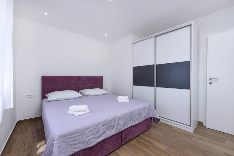 À l'intérieur, la maison dispose de six chambres confortables, de deux salles de bains modernes et de toilettes supplémentaires. Chaque appartement comprend une cuisine ouverte et un salon/salle à manger lumineux, alliant style et fonctionnalité. L'escalier intérieur relie le balcon à la terrasse sur le toit, créant une transition harmonieuse entre les espaces de vie intérieurs et extérieurs. Les clients peuvent également profiter d'une taverne dalmate traditionnelle avec un barbecue en pierre et une grande table à manger, parfaite pour partager des repas. Une salle à manger extérieure couverte, un parking privé et une connexion Wi-Fi rapide vous garantissent un séjour confortable.
