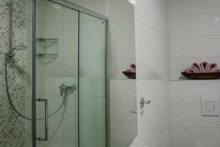 This five-bedroom can accommodate up to twelve guests. It features an SAT/flat-screen TV and is combined with a living room seating area and, sofa. The private bathroom is equipped with a shower, bathtub, and toilet.