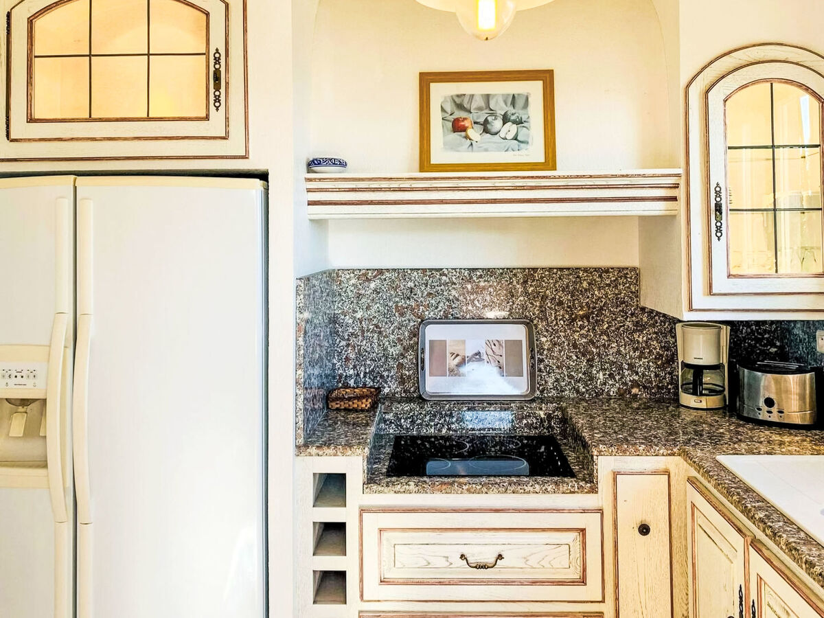 Cuisine (four, lave-vaisselle, 4 plaques à induction, grille-pain, bouilloire électrique, micro-ondes, cafetière électrique).