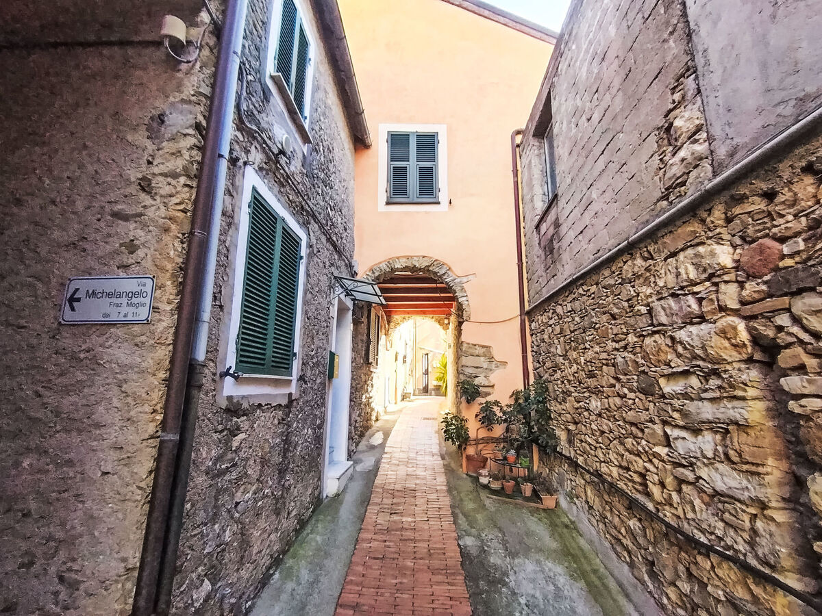 Location composée d'un bâtiment principal et d'une annexe, dans le quartier de Moglio, à 4 km du centre d'Alassio, situation ensoleillée, surélevée sur une colline, à 4 km de la mer, dans une zone piétonne.