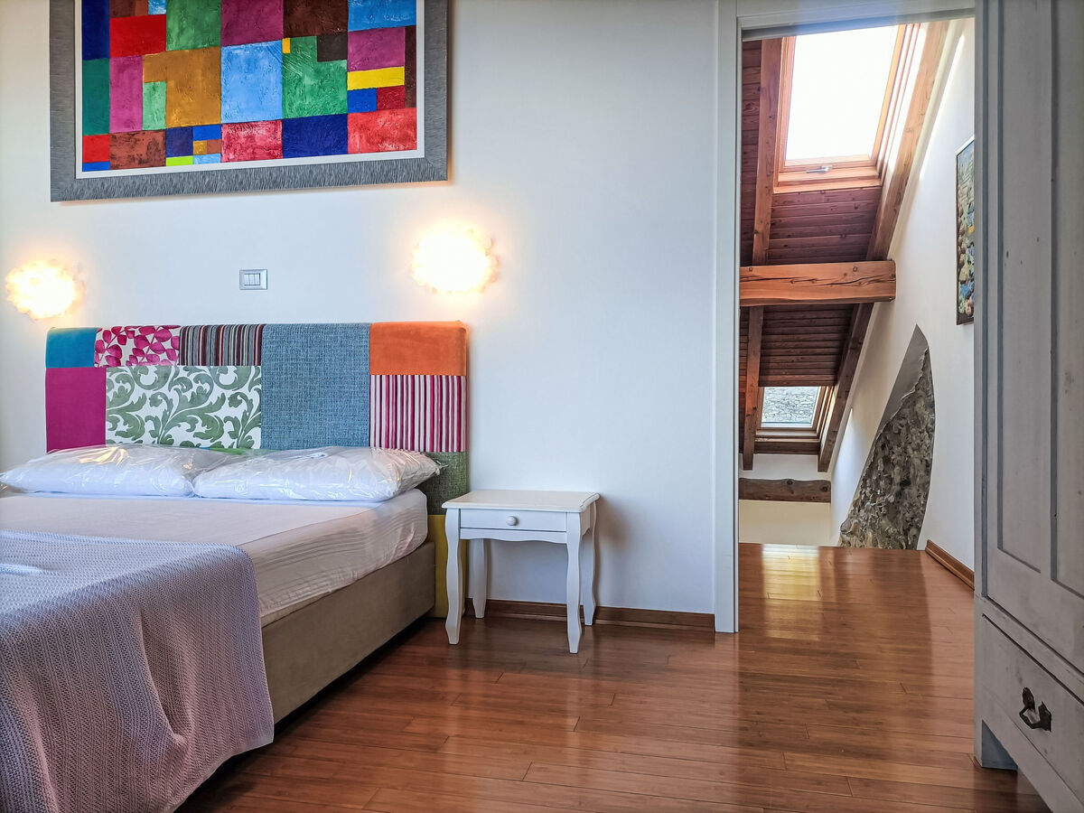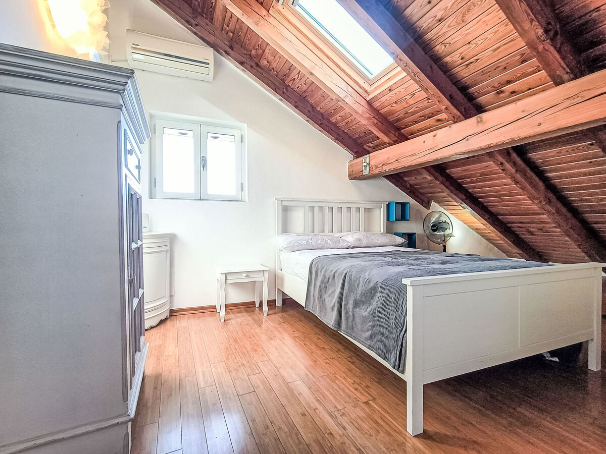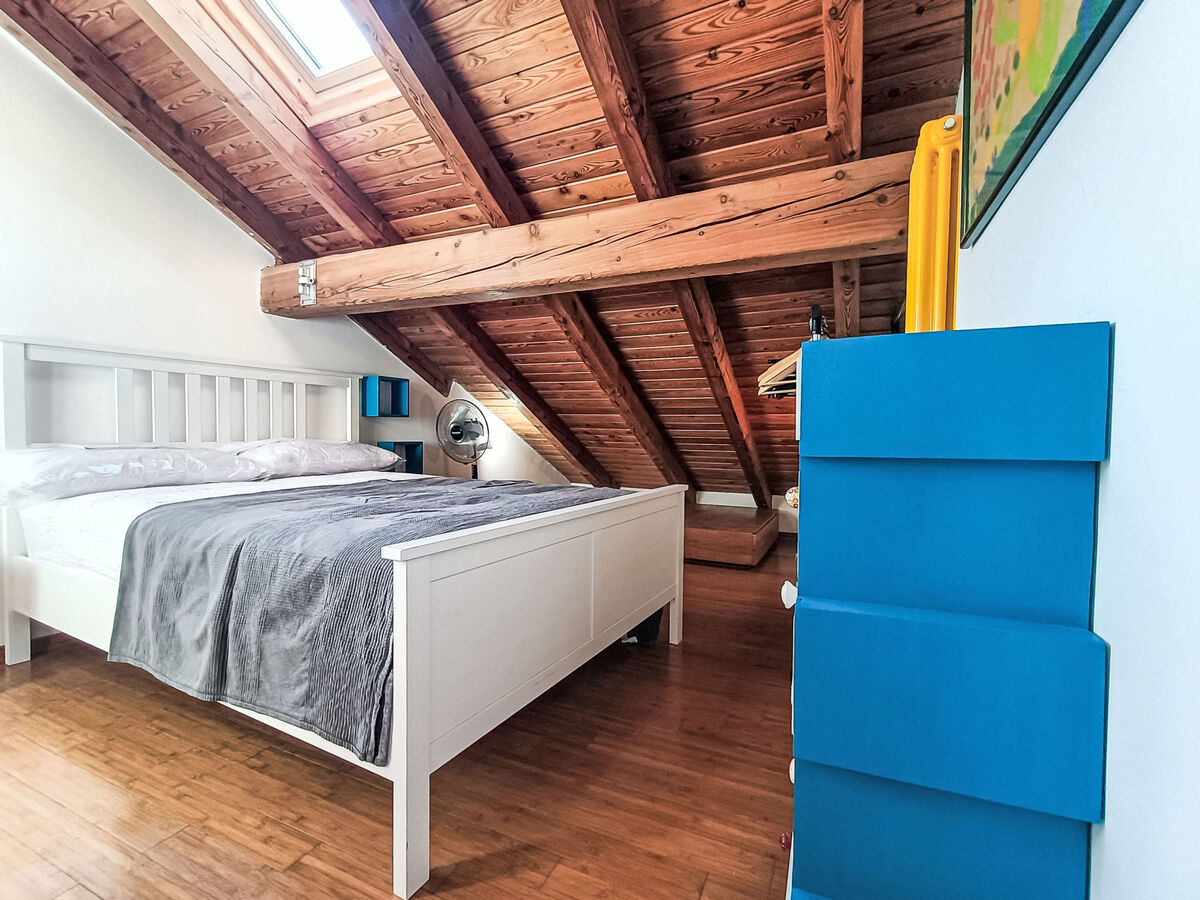 2ème étage: 1 chambre double, mansardée avec 1 grand-lit et air-conditionné.