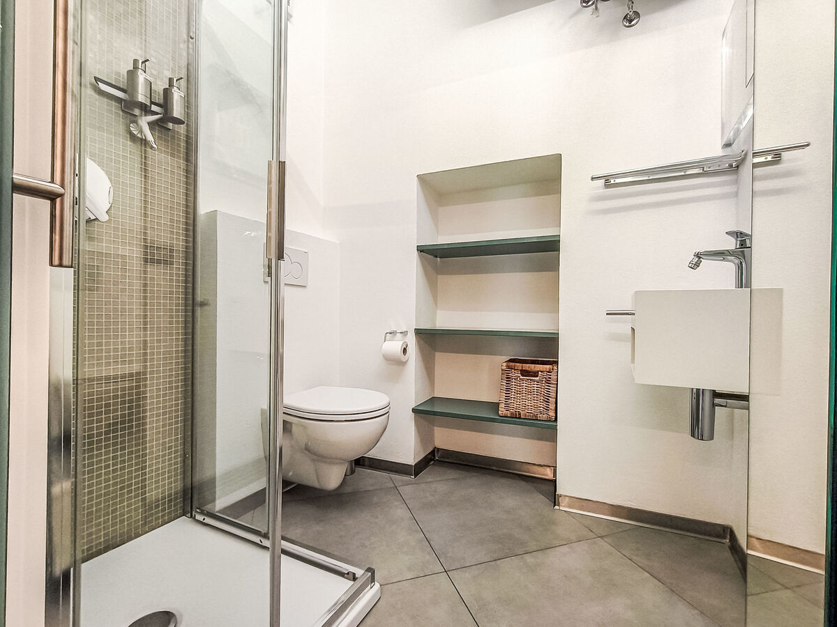 1 chambre avec 1 divan-lit double, table pour les repas, coin-cuisine et douche/WC.