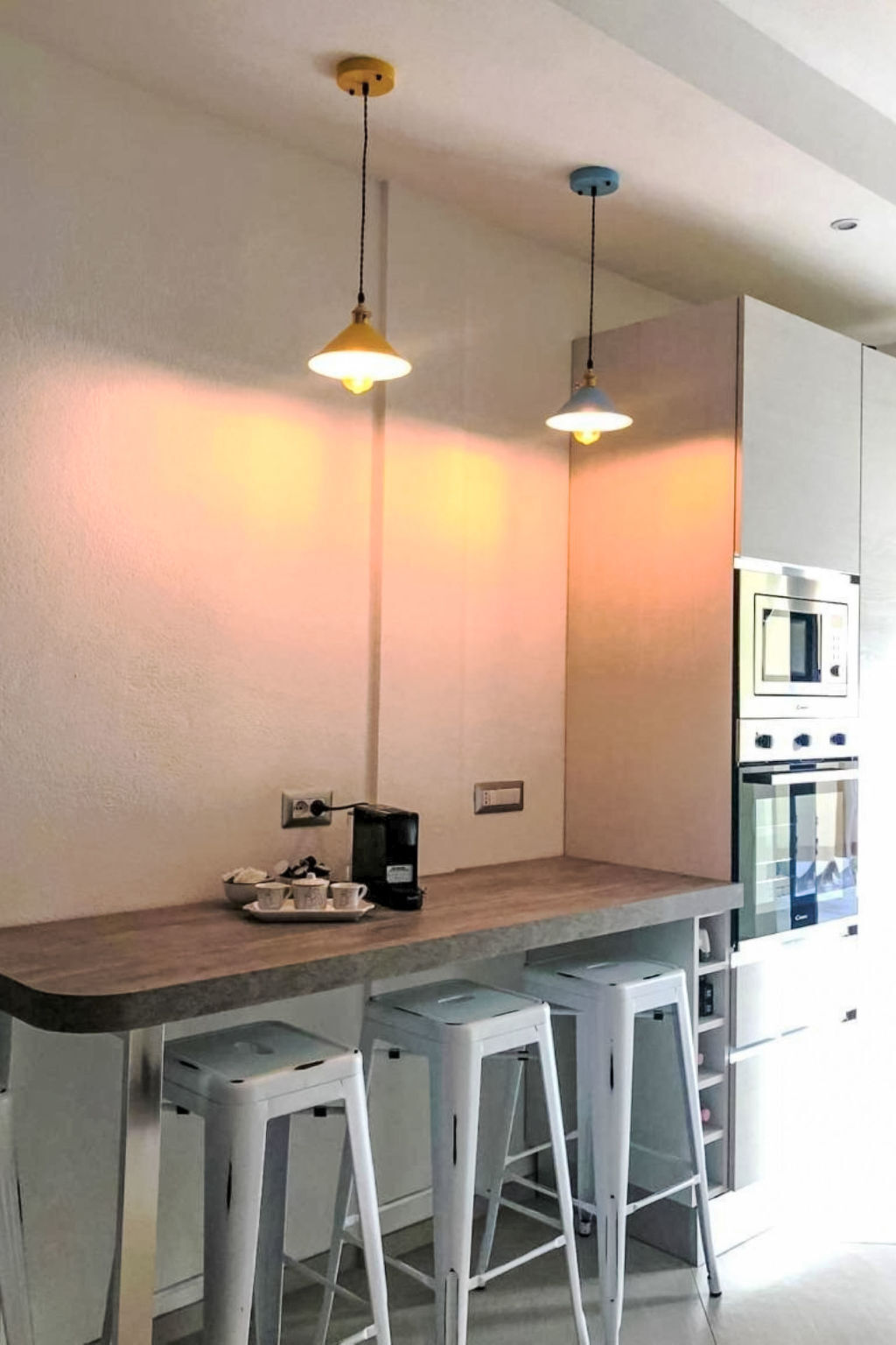 Coin cuisine (four, lave-vaisselle, 4 plaques à induction, grille-pain, micro-ondes, cafetière électrique).