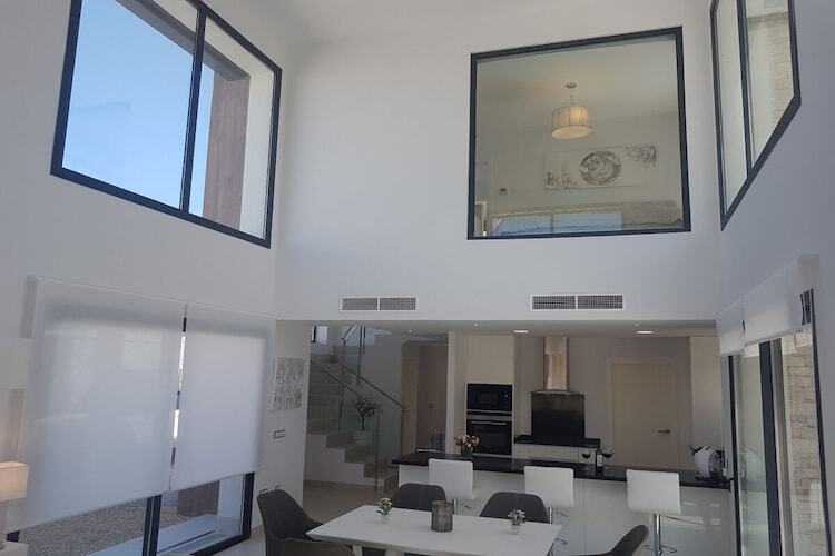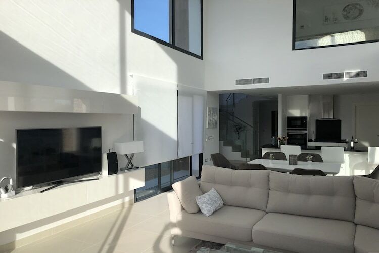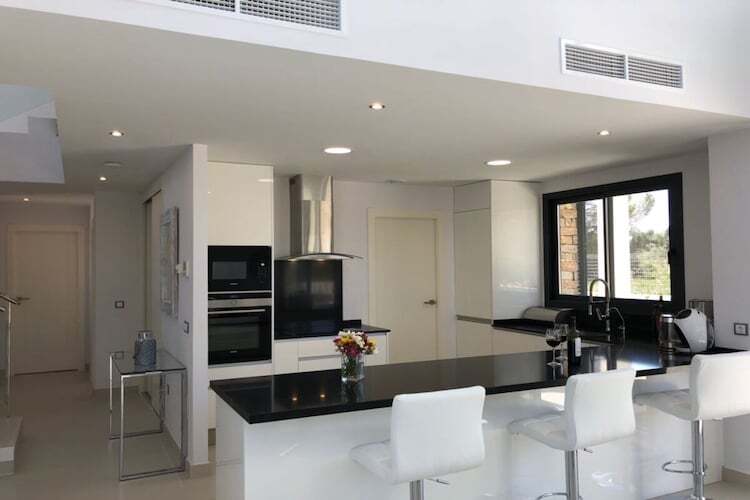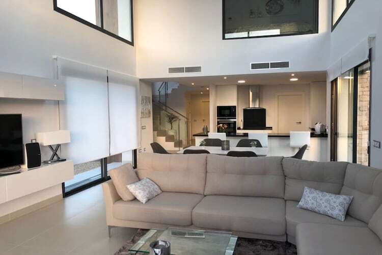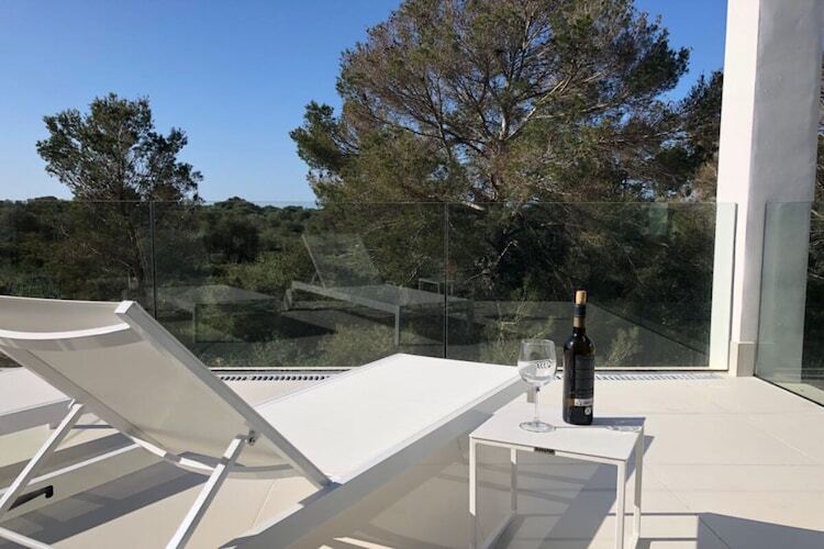 Villa design dans la baie de Cala Murada avec 3 chambres, 2 salles de bain, une grande terrasse, deux balcons, une vue imprenable sur les montagnes et une piscine privée.
