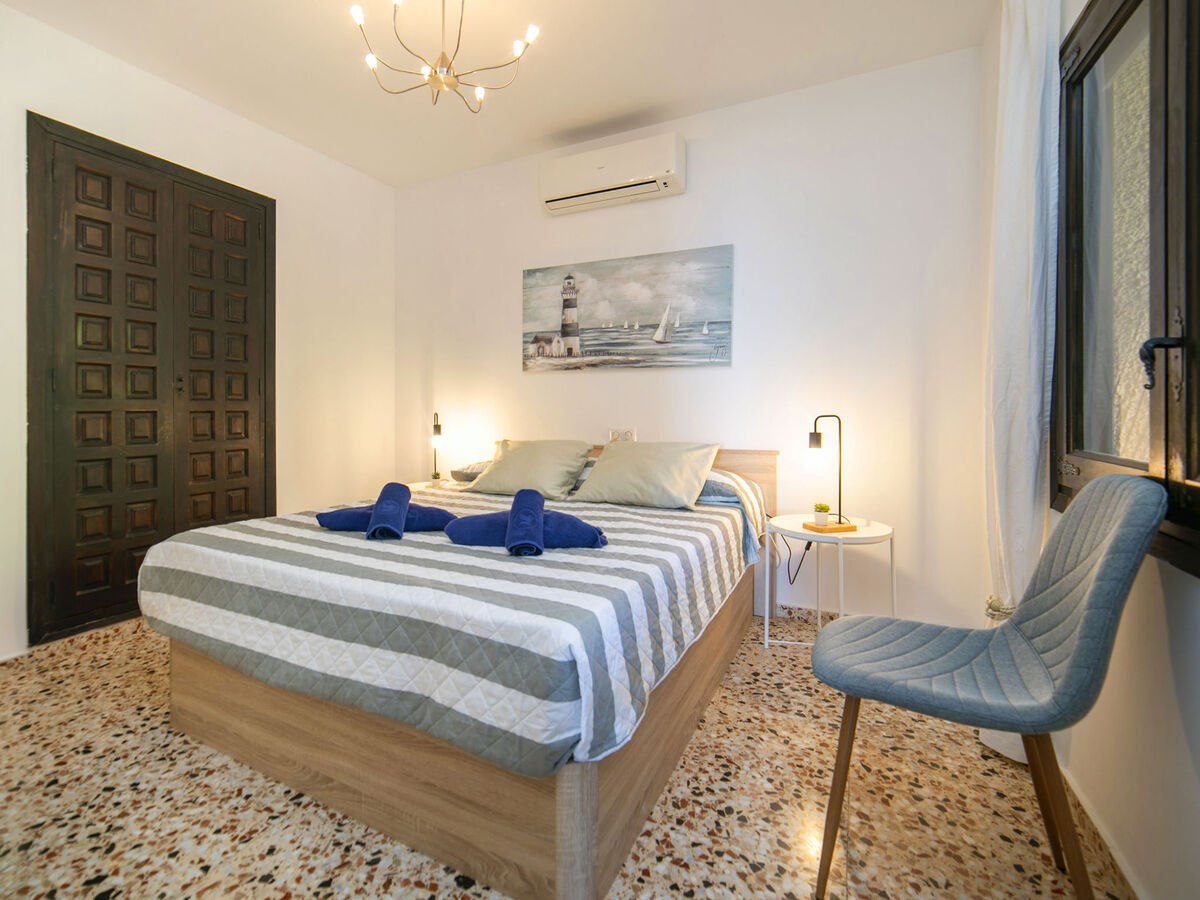 1 chambre avec 1 grand-lit (150 cm, longueur 190 cm), air-conditionné et chauffage à air chaud.