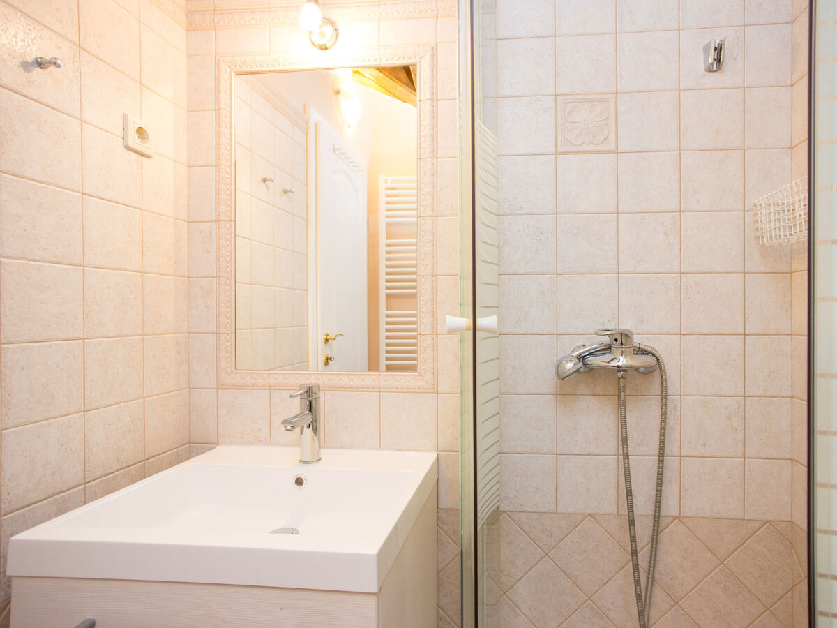 À l'étage supérieur: mansardé 3 chambres, hauteur plafond 170 - 210 cm, chaque chambre avec: 1 grand-lit (160 cm, longueur 200 cm), douche/WC et TV (satellite) (écran plat), air-conditionné.