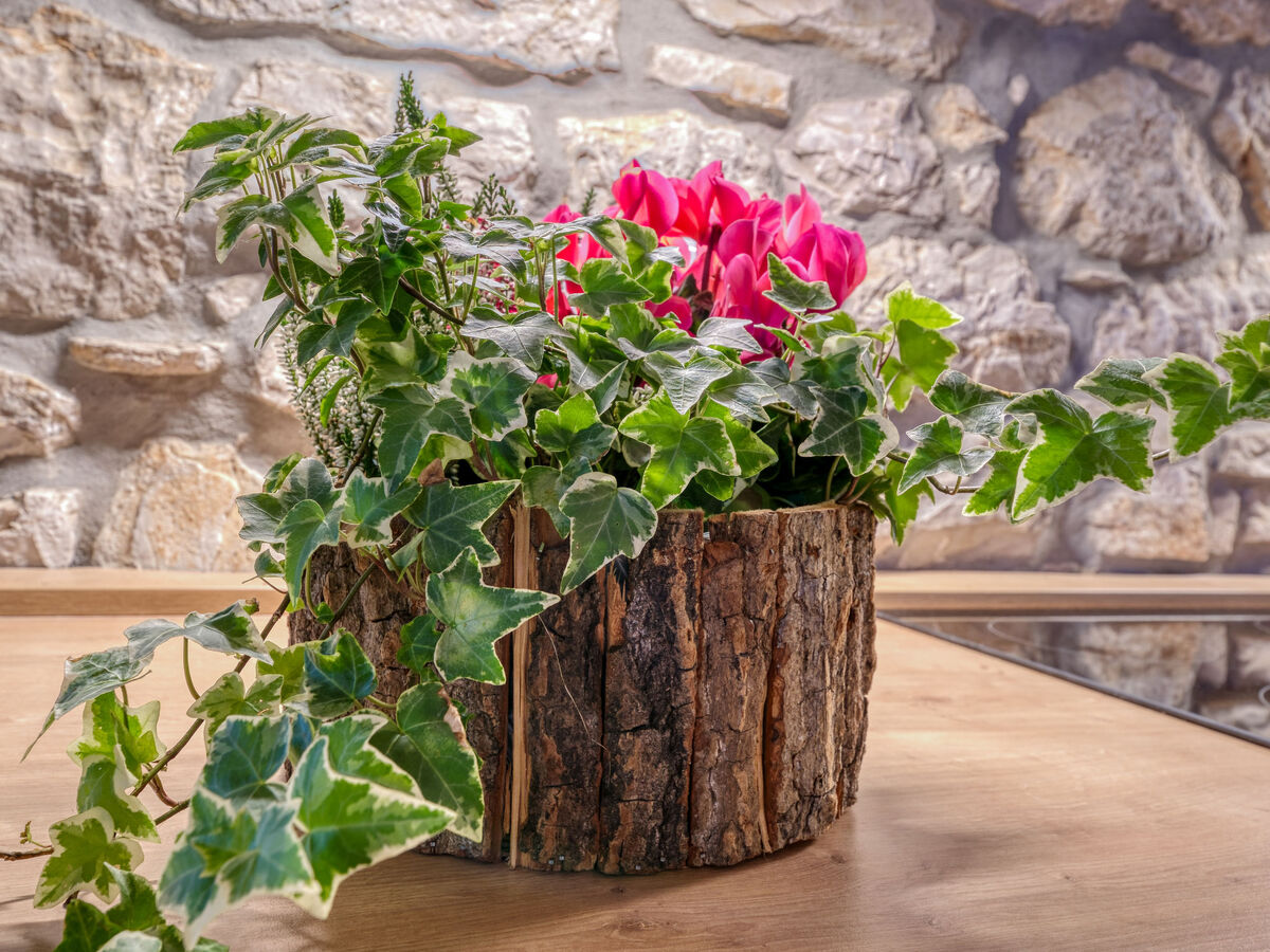 Aménagement rustique: séjour/salle à manger avec 1 divan-lit double (140 cm, longueur 200 cm), TV (satellite) (écran plat), air-conditionné.