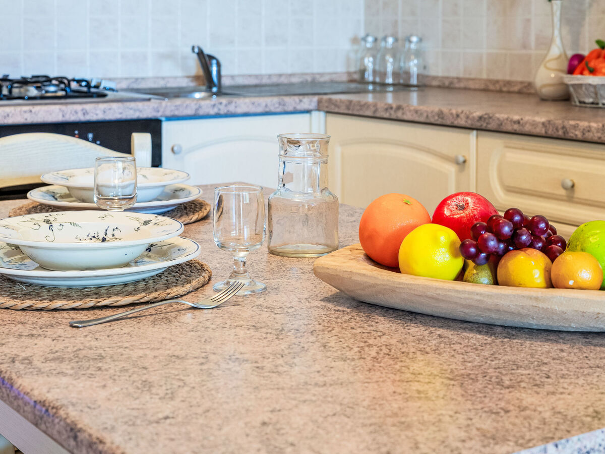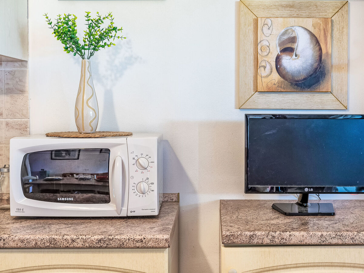 Coin cuisine (four, 4 feux, grille-pain, bouilloire électrique, micro-ondes).