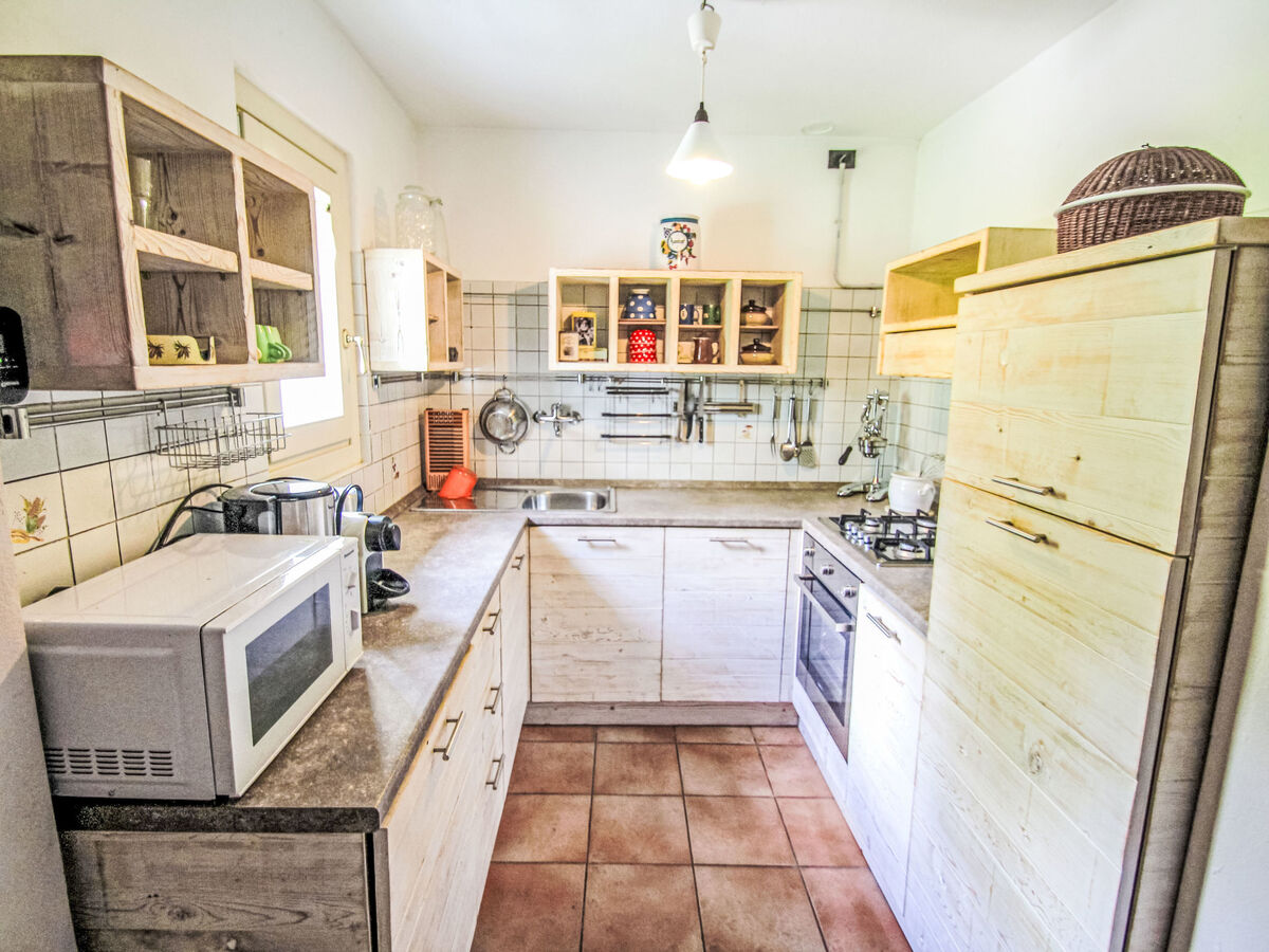 Cuisine ouverte (4 plaques de cuisson, four, micro-ondes, congélateur, cafetière électrique).