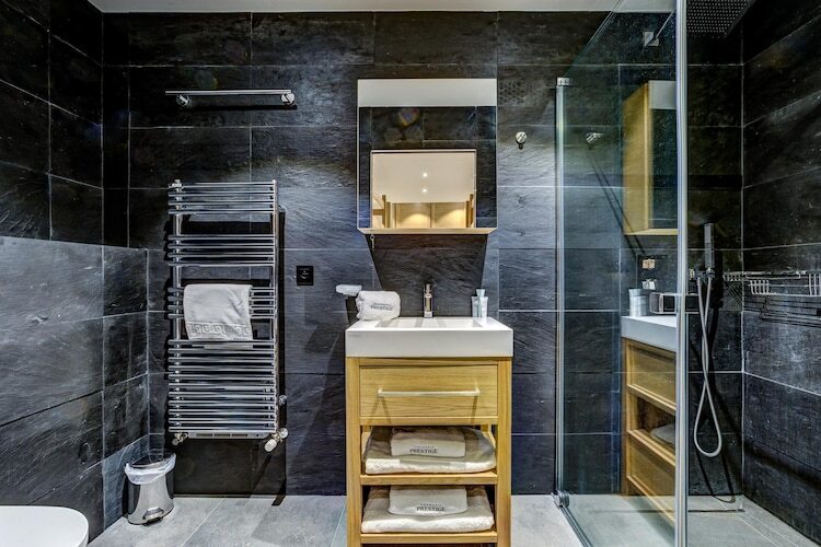 Conçu pour la détente et le style, le chalet dispose d'un élégant salon ouvert avec une cheminée, s'ouvrant sur une grande terrasse et un jardin privé. Les clients peuvent se détendre dans la piscine privée chauffée, le sauna ou le jacuzzi tout en profitant d'une vue panoramique sur les montagnes. La cuisine à induction entièrement équipée comprend un réfrigérateur, un four, un micro-ondes, un congélateur, un lave-vaisselle, une machine à café, un grille-pain, une bouilloire et tous les ustensiles nécessaires pour préparer vos repas. Six téléviseurs avec chaînes satellite, le Wi-Fi et le chauffage central vous garantissent divertissement et confort tout au long de votre séjour.