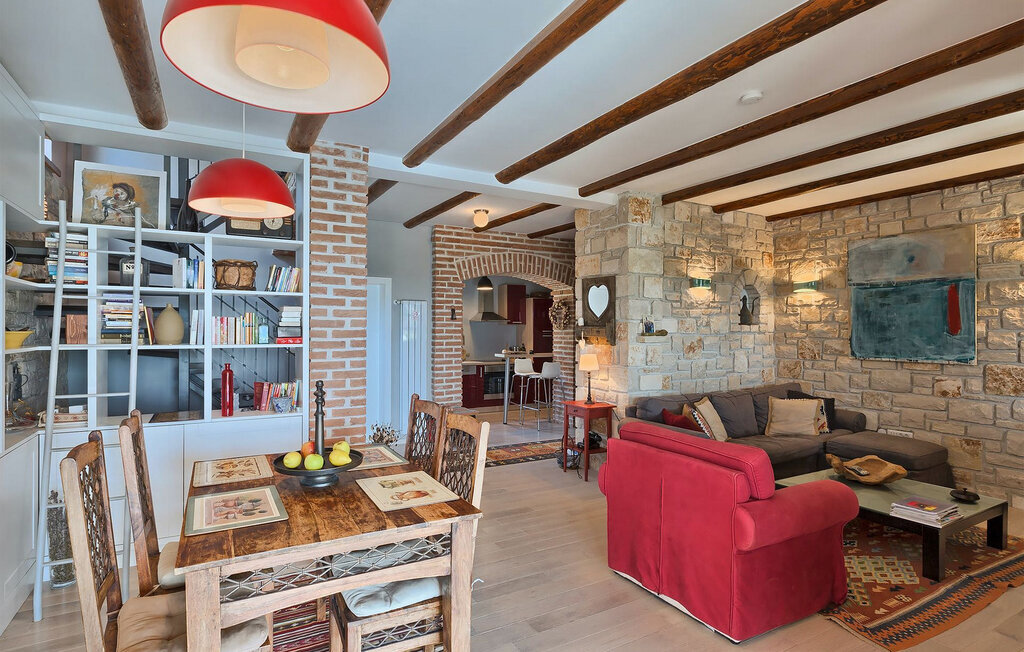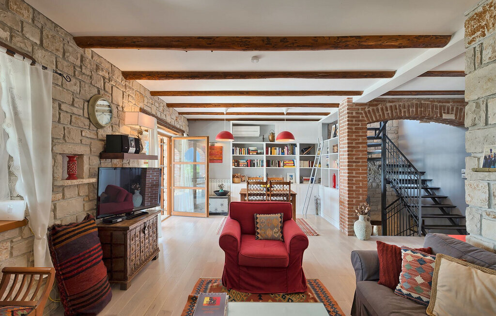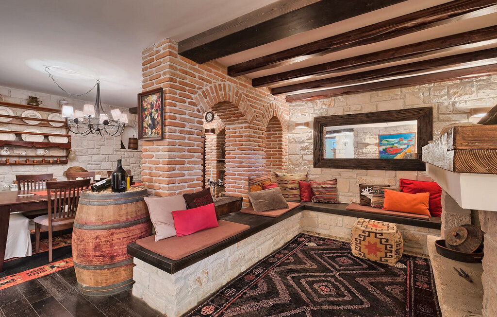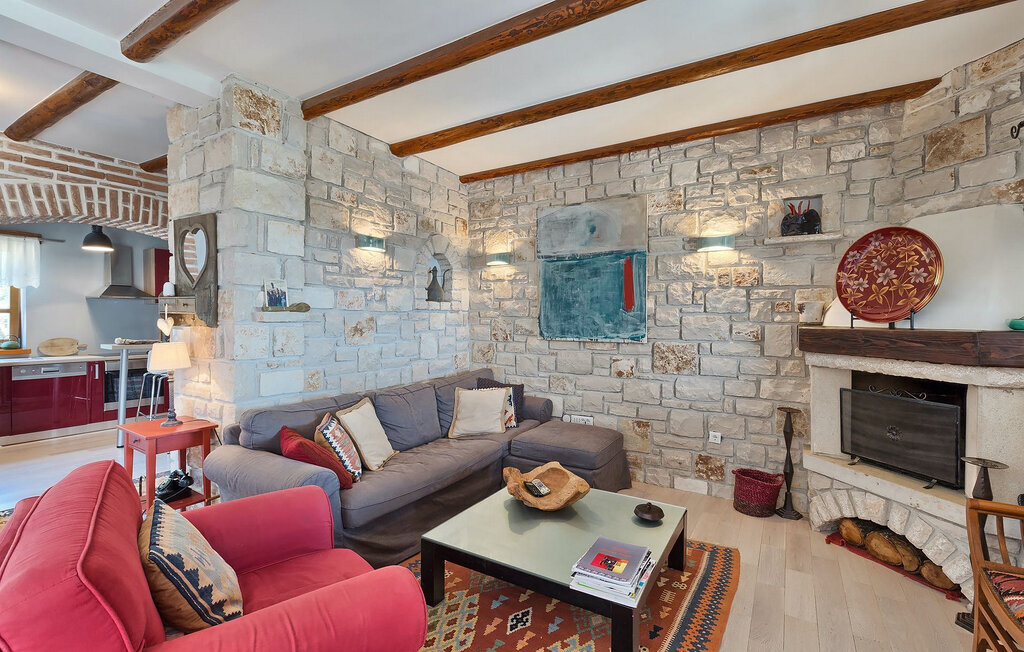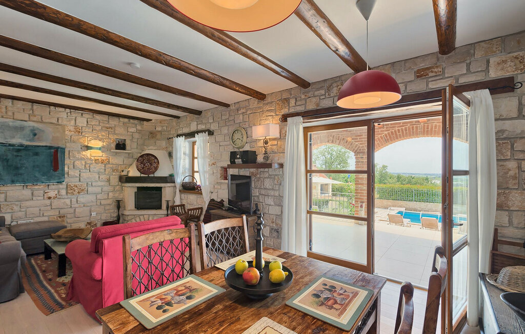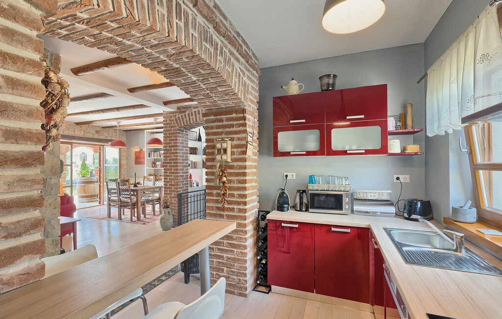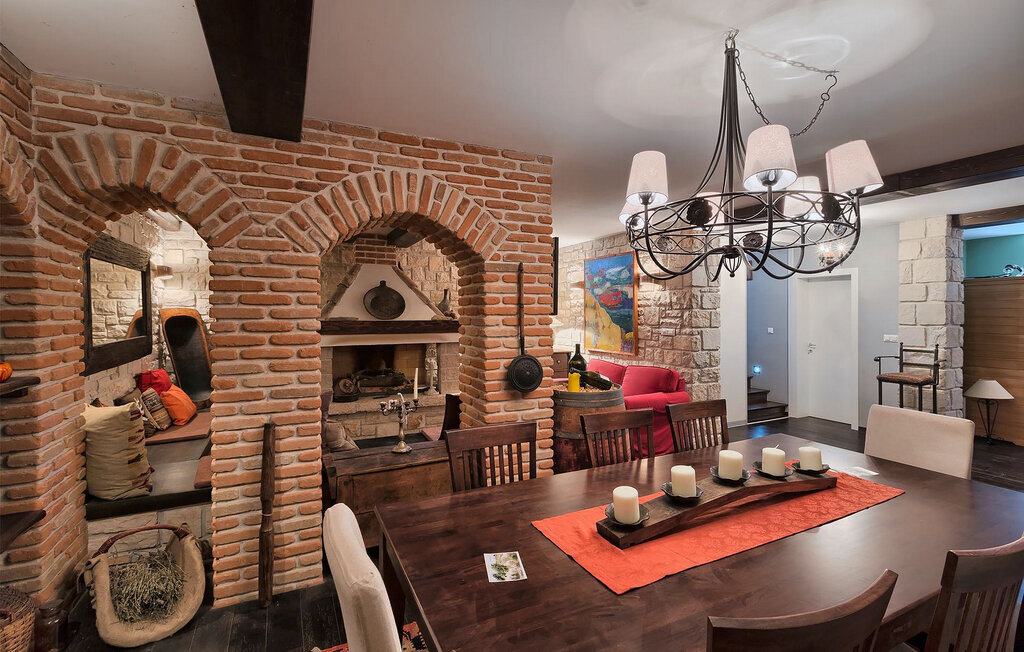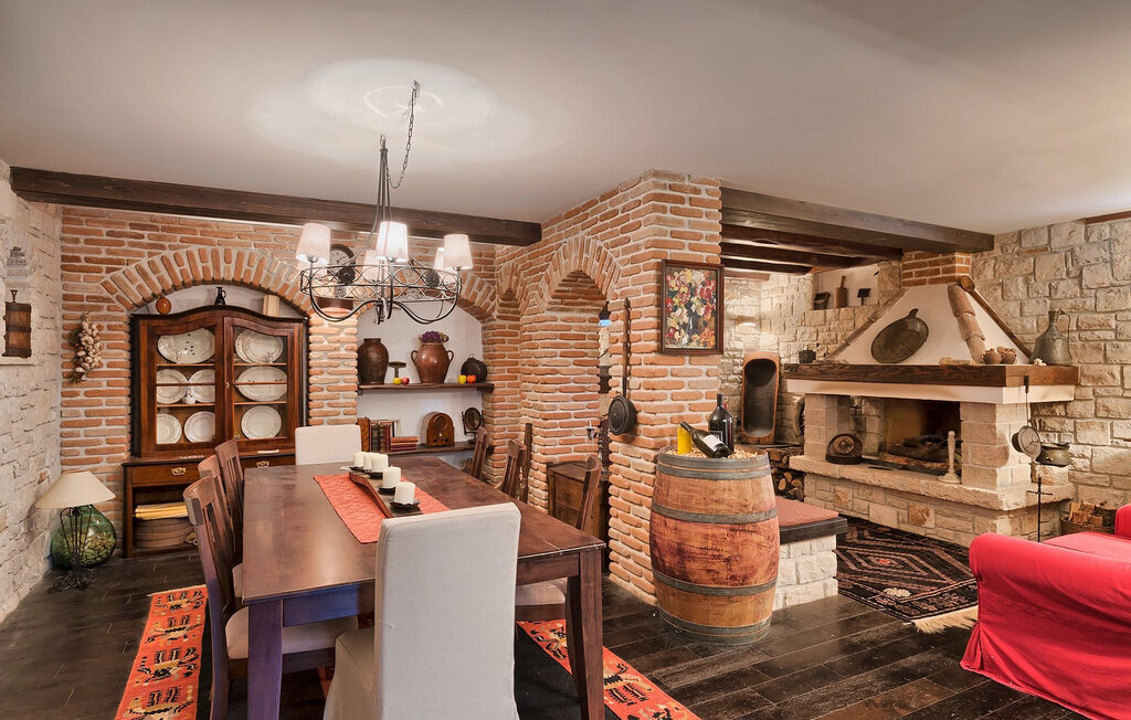 Cette maison de caractère allie le charme rustique à des détails confortables : les murs en pierre naturelle, les poutres en bois et les meubles de style campagnard créent une atmosphère chaleureuse. Passez des heures de détente au coin du feu dans le salon ou terminez la soirée avec un verre de vin. La cuisine entièrement équipée vous invite à cuisiner ensemble et la salle à manger, avec son impressionnante cheminée, est un lieu idéal pour se retrouver en toute convivialité.