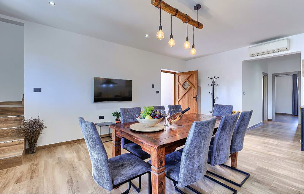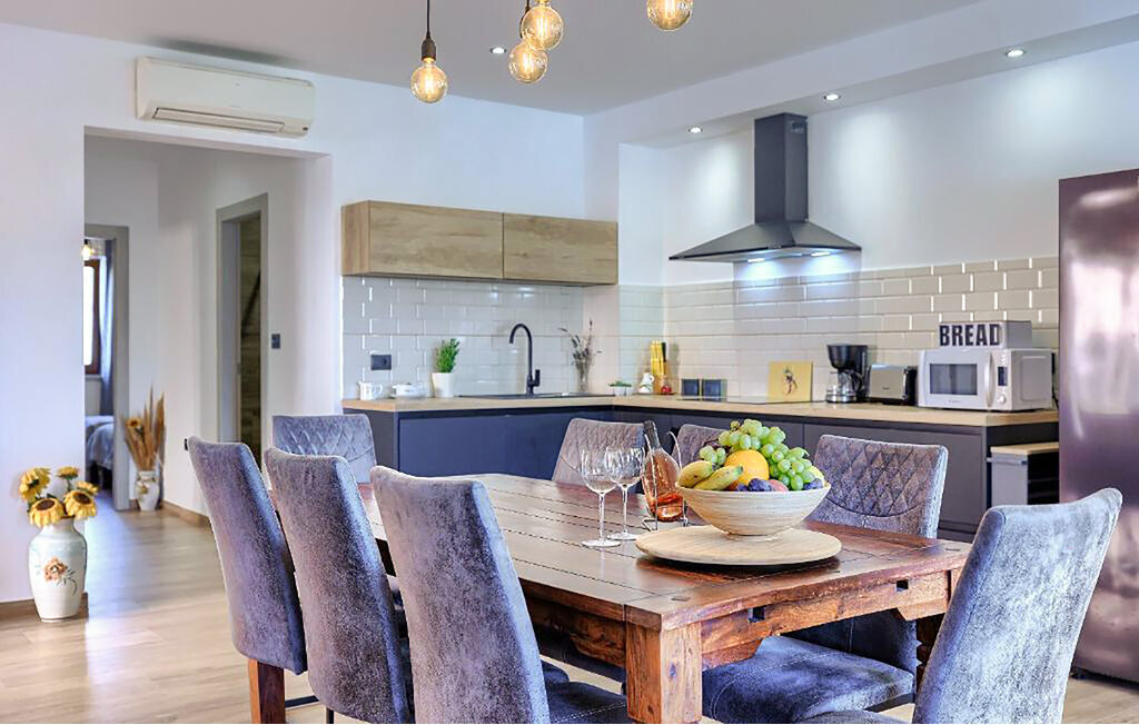 Cette maison vous promet des vacances de première classe. L'élégance moderne et le confort se combinent pour créer une ambiance agréable dans laquelle vous pouvez immédiatement vous mettre en mode vacances. De grandes baies vitrées laissent entrer beaucoup de lumière du jour à l'intérieur, tandis que vous vous détendez sur le canapé avec une tasse de café. Préparez de délicieux plats dans la cuisine moderne et savourez-les avec un bon vin croate en toute convivialité.