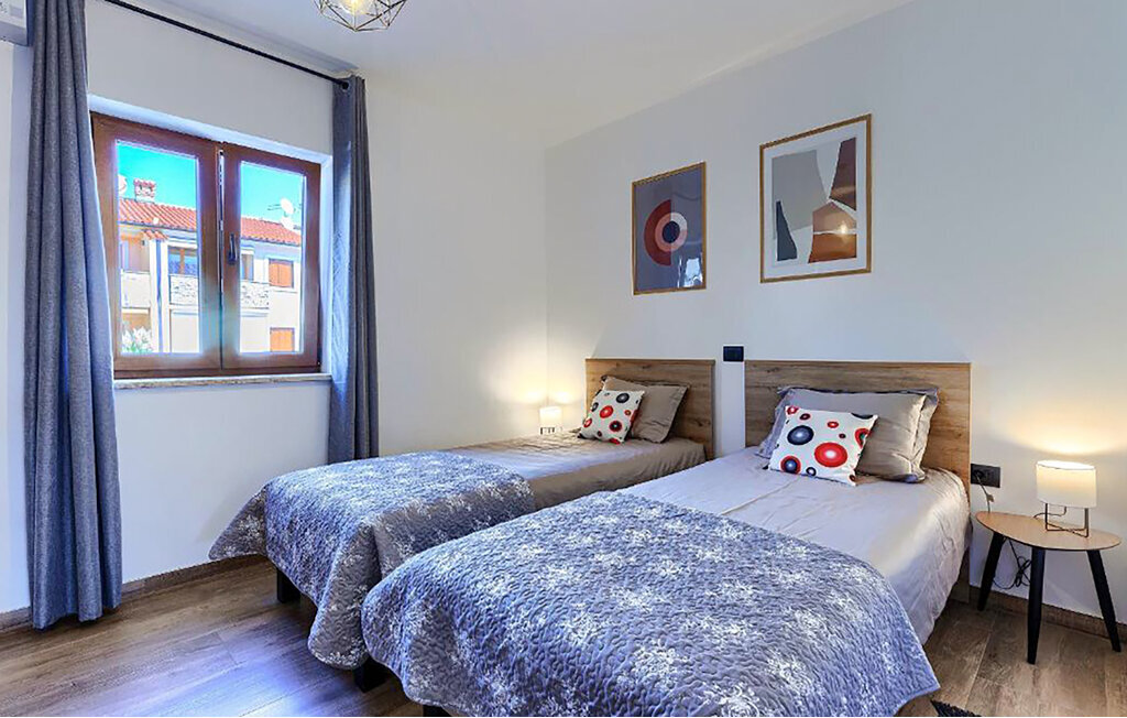 Faites une petite excursion à la plage et profitez de l'eau turquoise, idéale pour nager et faire du snorkeling. Faites une excursion d'une journée dans la ville voisine de Pula, où vous pourrez visiter l'impressionnant amphithéâtre romain et flâner dans les rues animées bordées de cafés accueillants. Le paysage autour de Segotii se caractérise par des forêts de pins odorantes, de vastes champs et le bleu éclatant de la mer Adriatique.