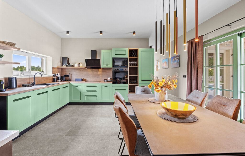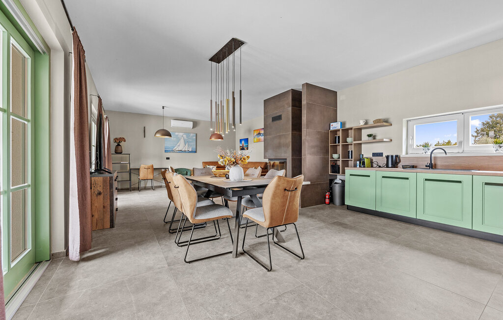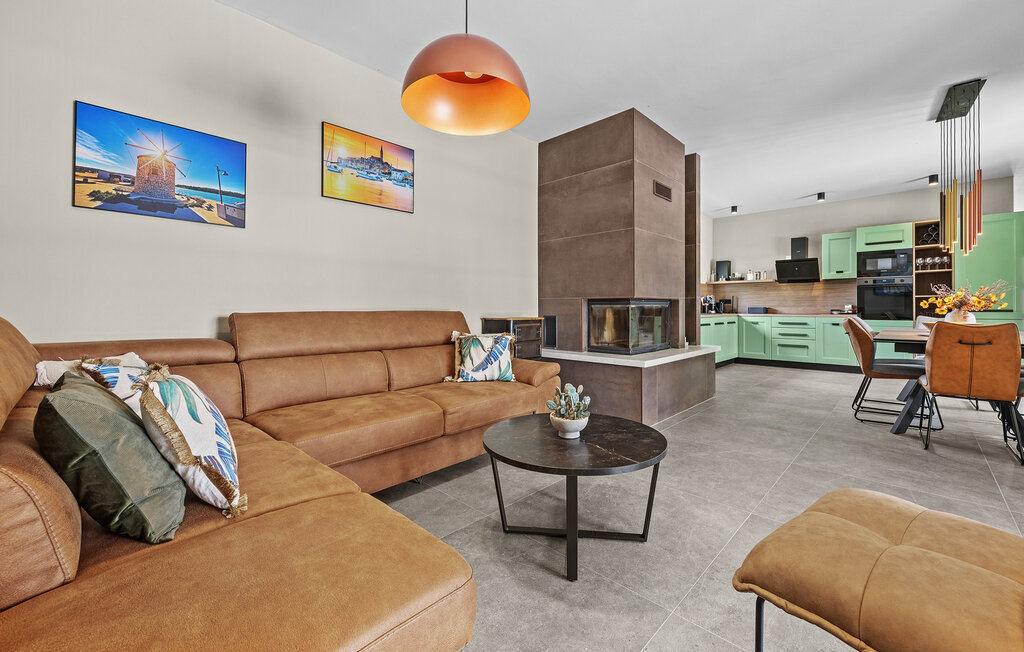 Située entre de douces collines, cette maison vous promet des vacances de première classe. Un salon joliment aménagé avec des touches de couleurs sympathiques vous invite à vous reposer et à faire le plein d'énergie. Passez des heures de détente sur le canapé en regardant un film, en écoutant votre musique préférée ou en préparant ensemble de bons petits plats dans la cuisine.