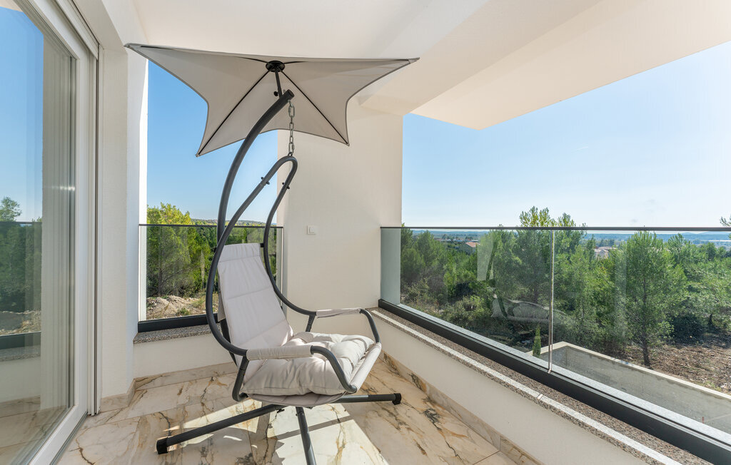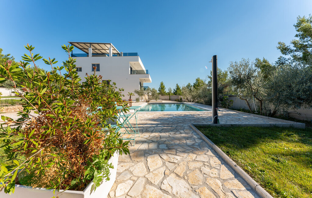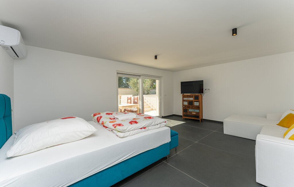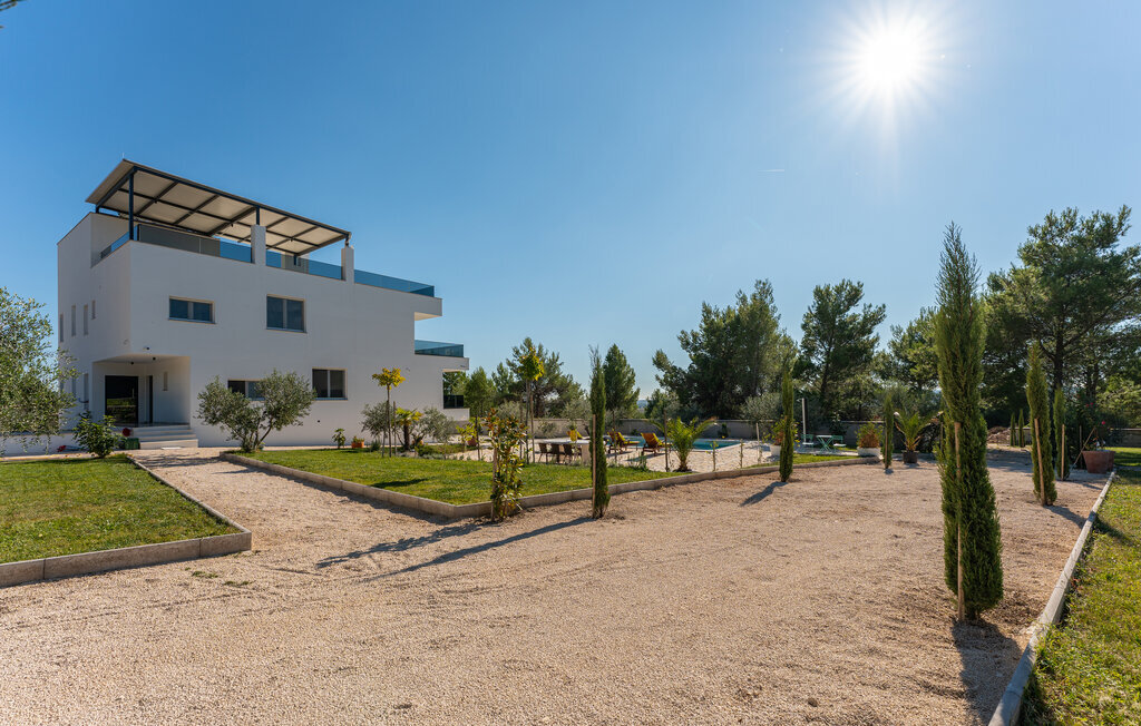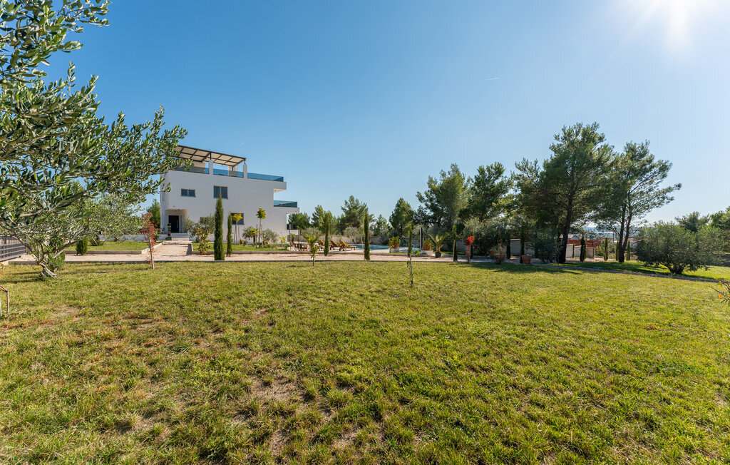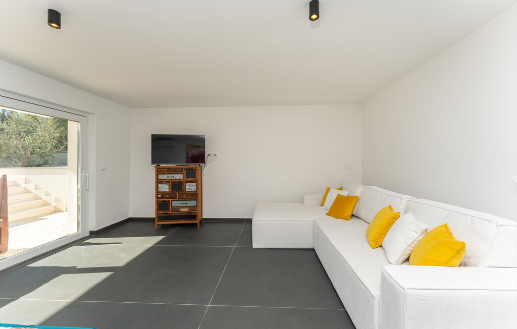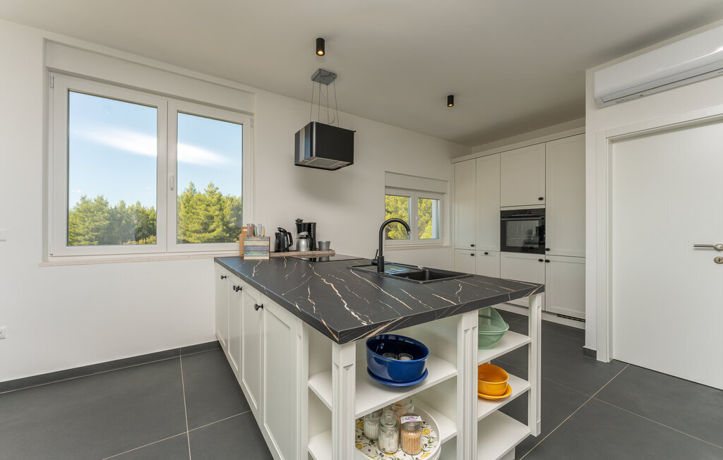 Cette maison de vacances vous promet des vacances de grande classe. Ici, l'élégance moderne et le confort se combinent pour créer une ambiance agréable dans laquelle vous vous sentirez immédiatement chez vous. De grandes baies vitrées laissent entrer beaucoup de lumière du jour à l'intérieur, tandis que vous profitez d'une vue magnifique sur l'extérieur depuis le canapé. Préparez de délicieux plats dans la cuisine moderne et savourez-les avec un bon vin croate en toute convivialité.
