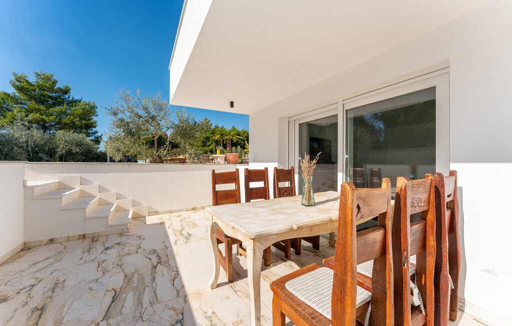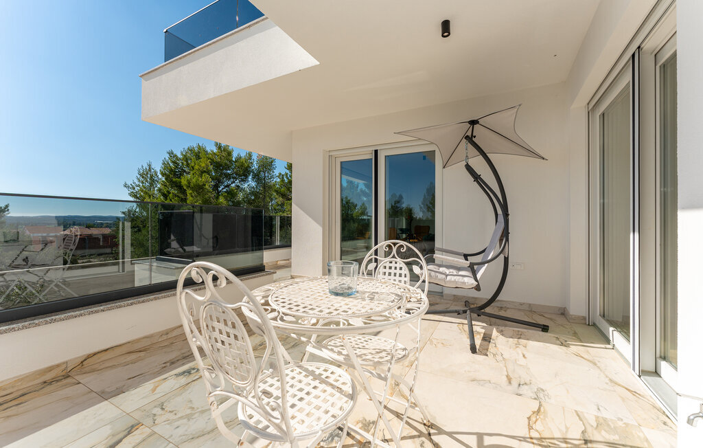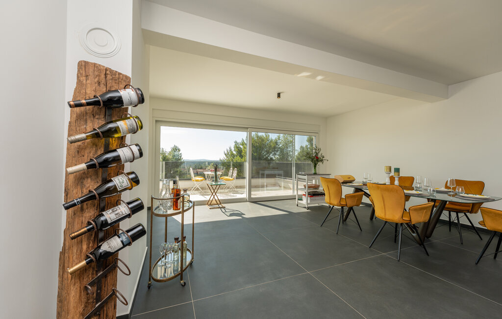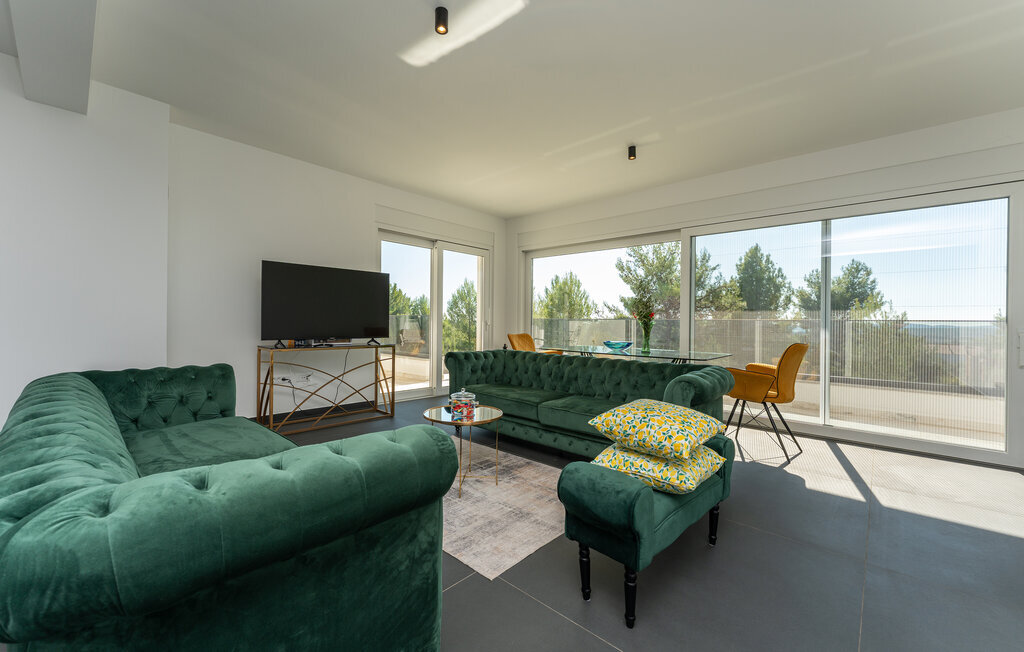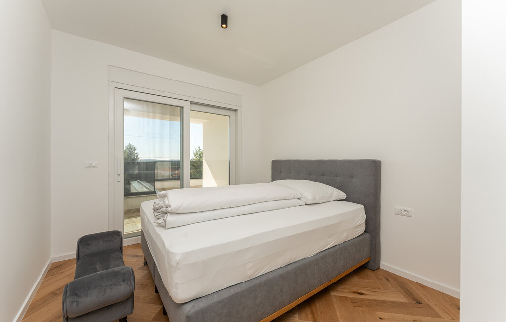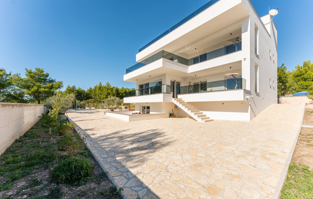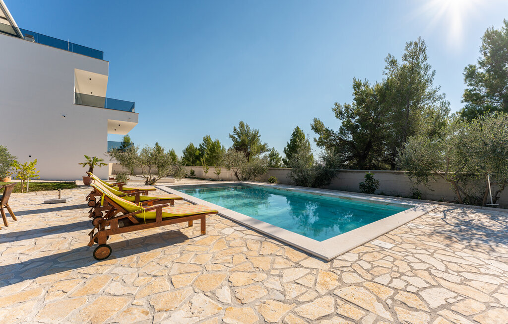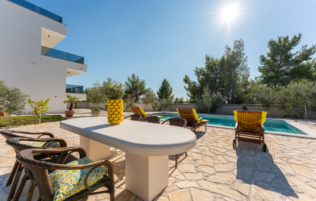 Cette maison de vacances vous promet des vacances de grande classe. Ici, l'élégance moderne et le confort se combinent pour créer une ambiance agréable dans laquelle vous vous sentirez immédiatement chez vous. De grandes baies vitrées laissent entrer beaucoup de lumière du jour à l'intérieur, tandis que vous profitez d'une vue magnifique sur l'extérieur depuis le canapé. Préparez de délicieux plats dans la cuisine moderne et savourez-les avec un bon vin croate en toute convivialité.