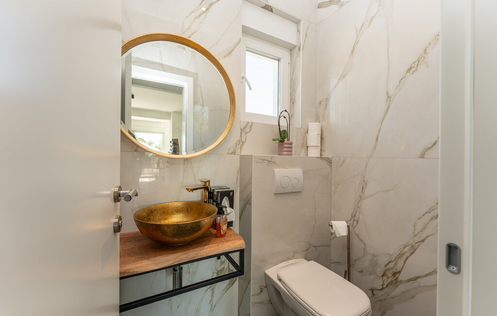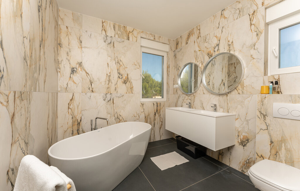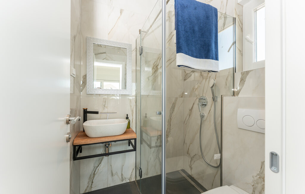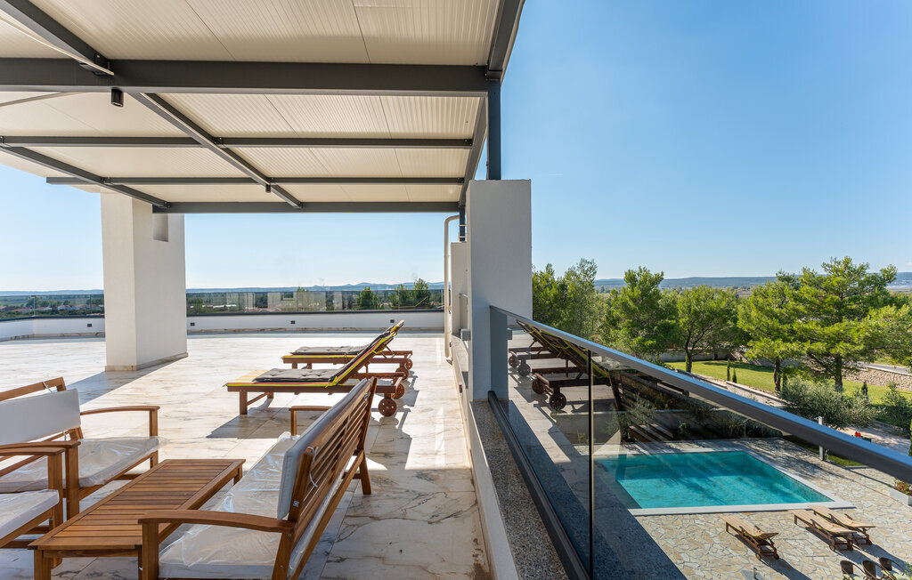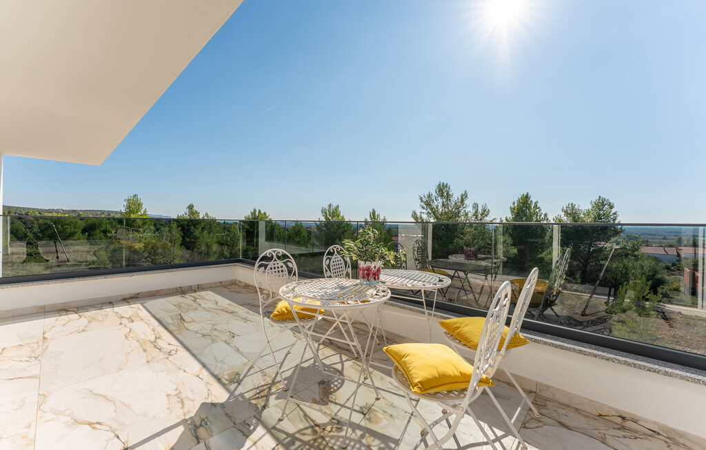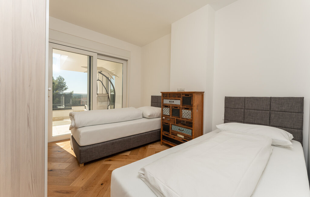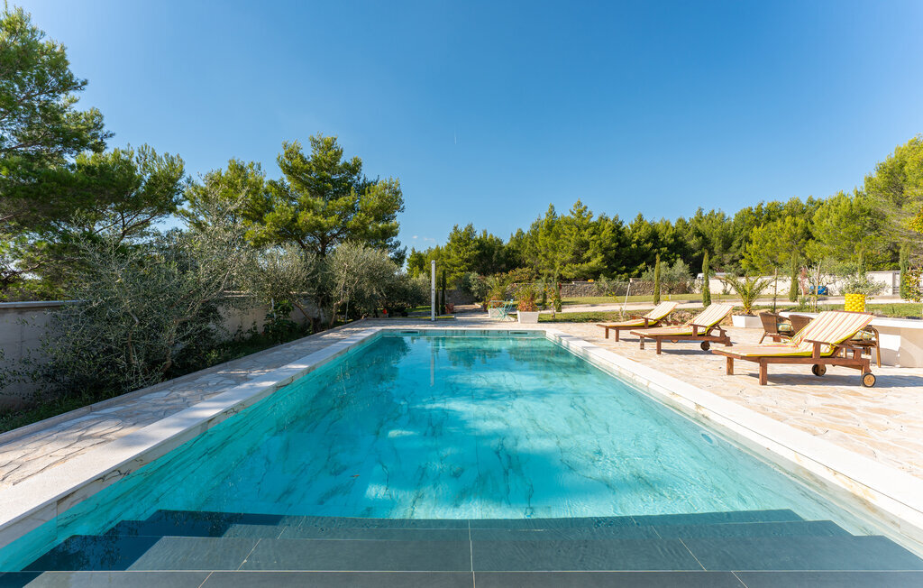 Cette maison de vacances vous promet des vacances de grande classe. Ici, l'élégance moderne et le confort se combinent pour créer une ambiance agréable dans laquelle vous vous sentirez immédiatement chez vous. De grandes baies vitrées laissent entrer beaucoup de lumière du jour à l'intérieur, tandis que vous profitez d'une vue magnifique sur l'extérieur depuis le canapé. Préparez de délicieux plats dans la cuisine moderne et savourez-les avec un bon vin croate en toute convivialité.