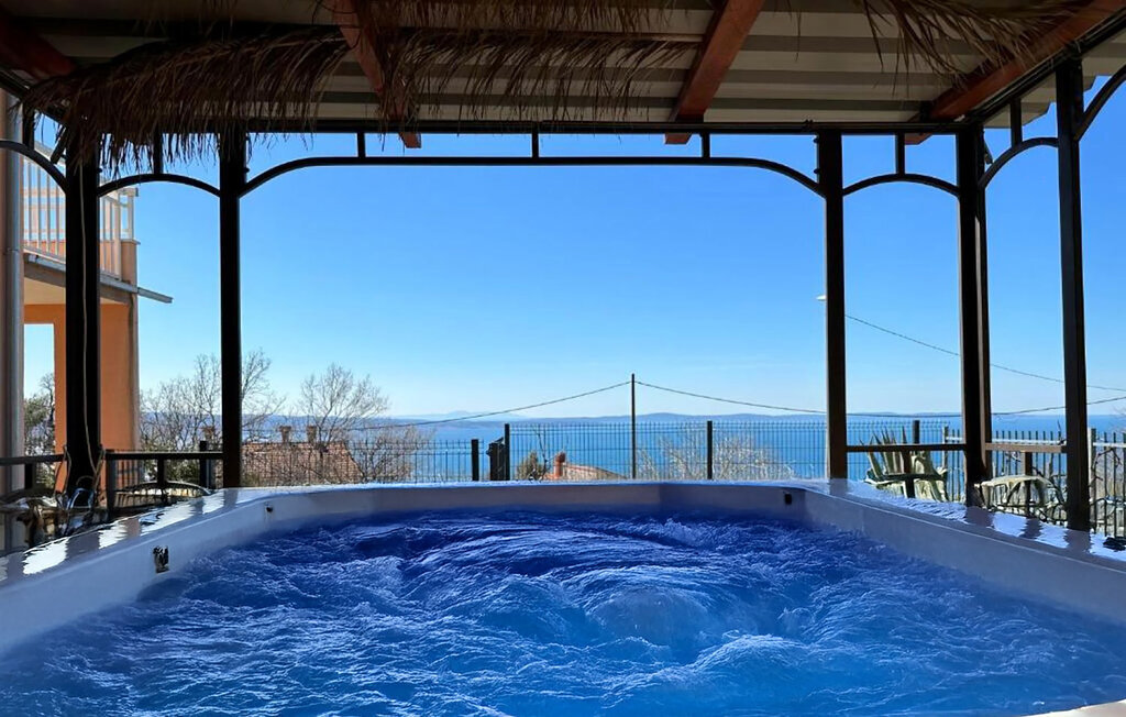 Bien-être à l'extérieur : Location de vacances disposant de chaises-longues et d'un ou plusieurs équipements tels que piscine extérieure, jacuzzi extérieur, lit à baldaquin de jardin etc...