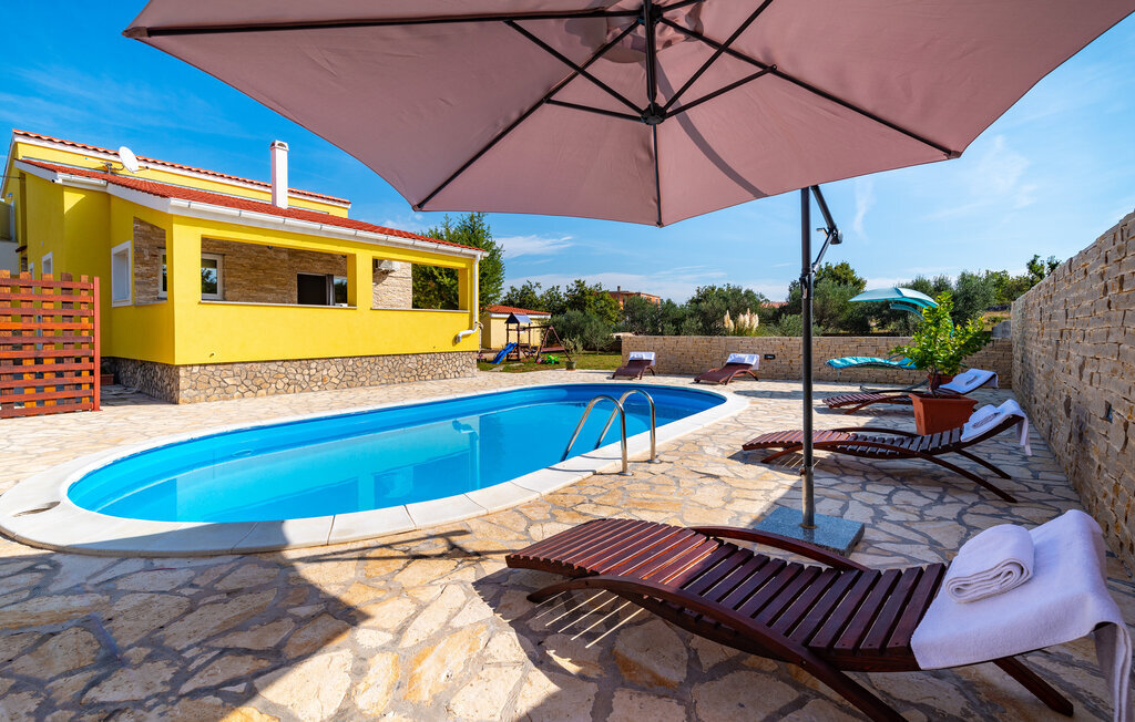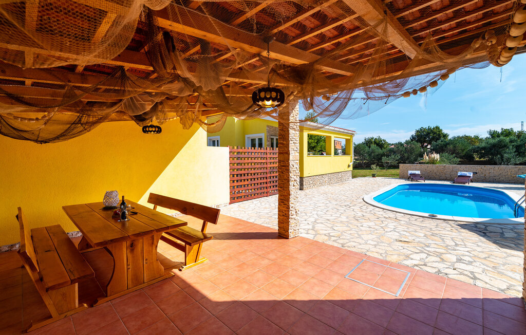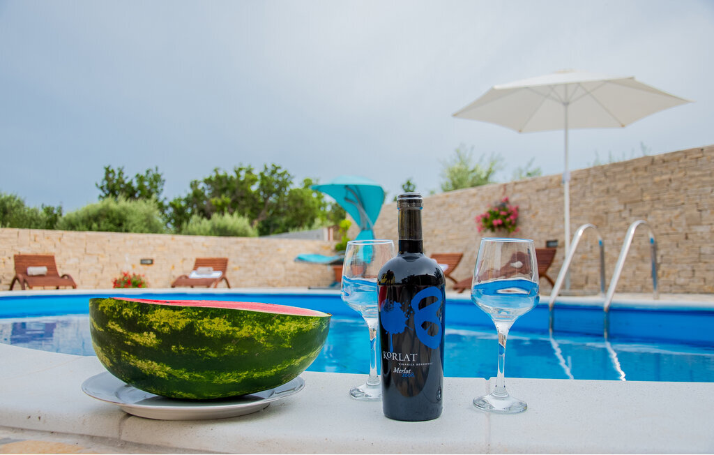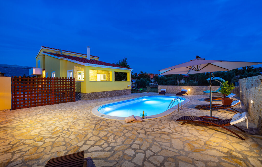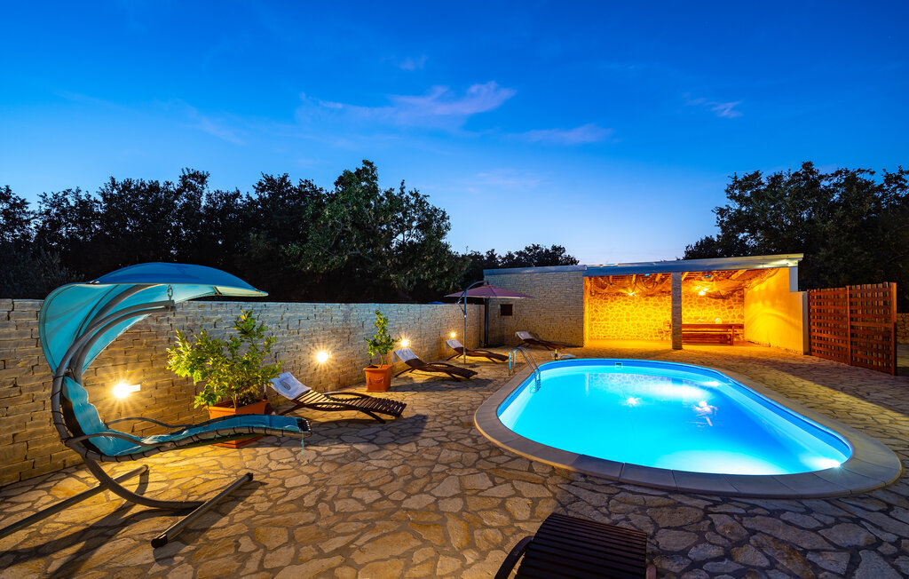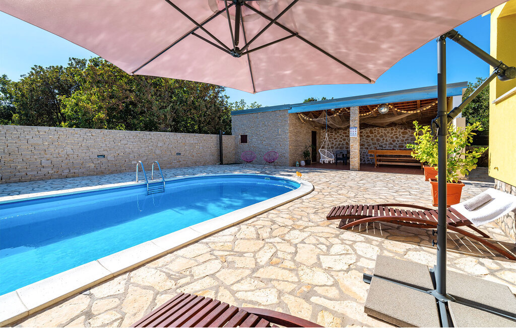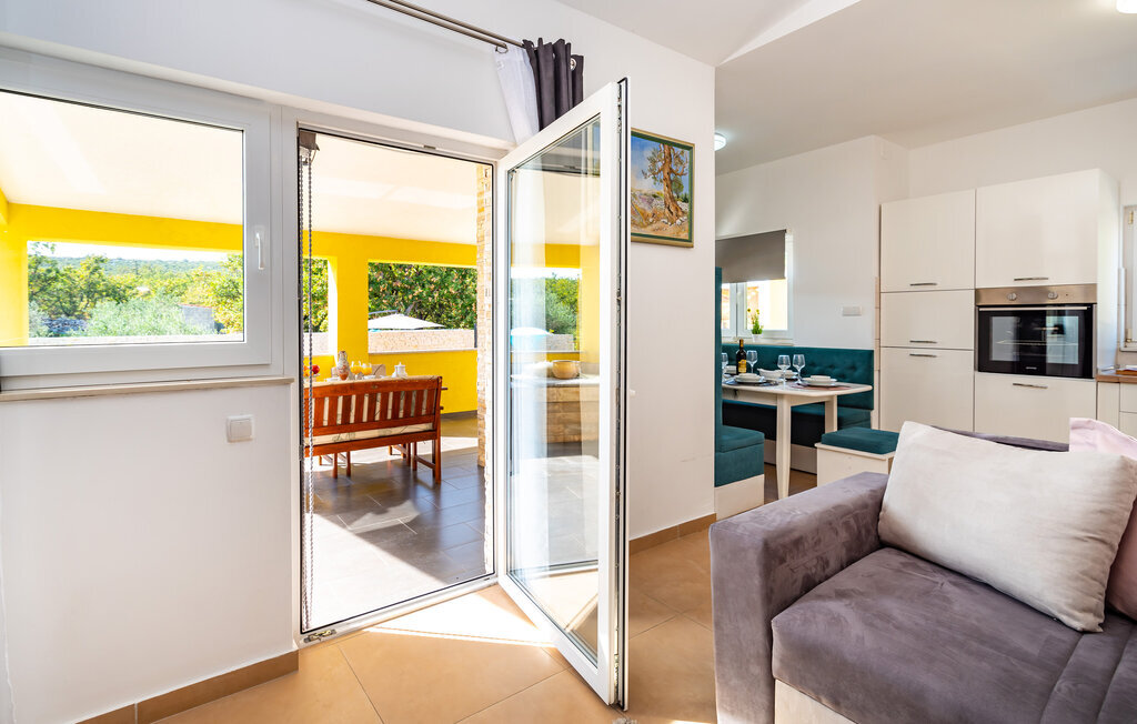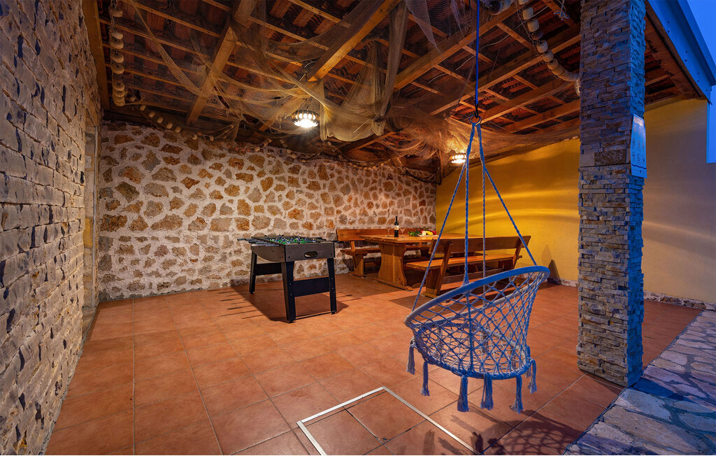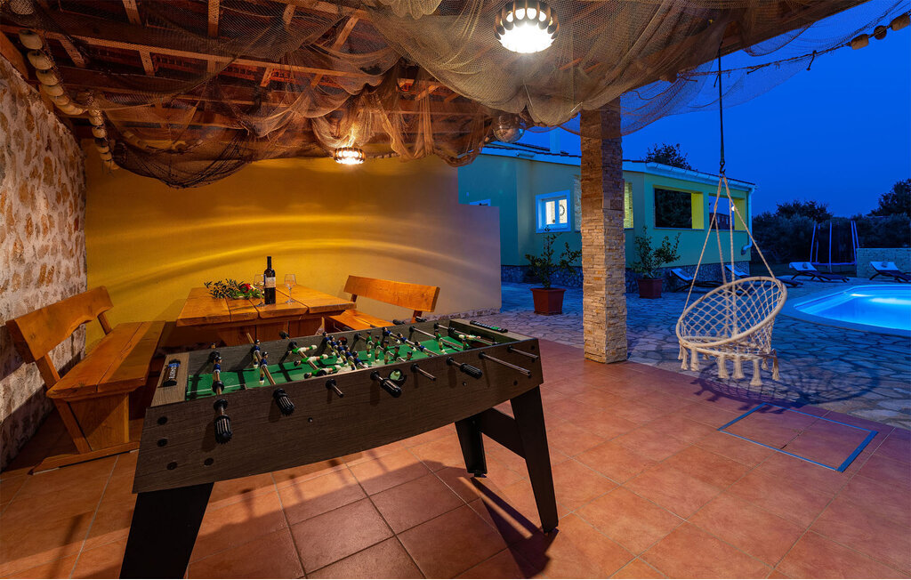 Passez des journées inoubliables dans votre maison de vacances de luxe qui allie confort, calme et joie de vivre dalmate. Vous trouverez ici le lieu de retraite idéal pour les familles ou les couples en quête de repos, de soleil et d'intimité. Profitez de l'atmosphère lumineuse de la maison, aménagée avec goût, et détendez-vous dans le salon élégant avec ses canapés confortables et ses jolis détails en pierre et en bois. Préparez vos plats préférés dans la cuisine spacieuse avec un grand plan de travail ou commencez la journée par un petit déjeuner dans le coin repas confortable.