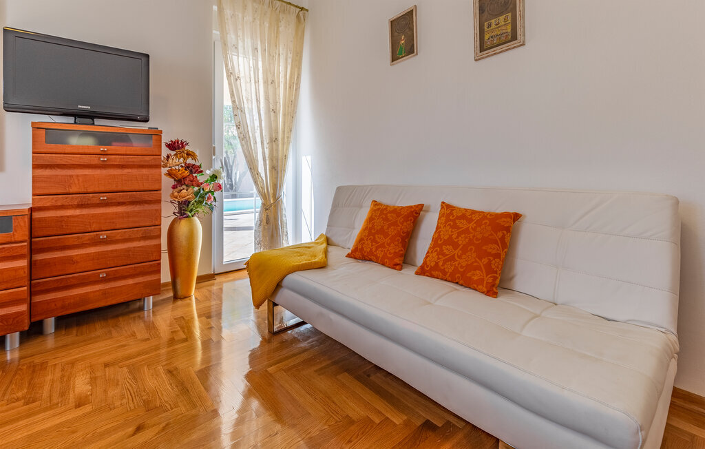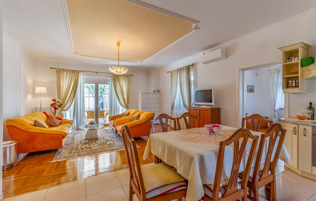 Votre logement vous offre le calme, l'intimité et une atmosphère agréable. Vous pourrez vous détendre, vous ressourcer et profiter de la proximité de la mer et de la culture. Les pièces à vivre lumineuses sont aménagées de manière classique. Installez-vous sur les sièges confortables du salon et passez des soirées conviviales en regardant la télévision. Profitez de la cuisine bien équipée pour préparer vos repas et prenez-les en toute convivialité dans la salle à manger attenante.