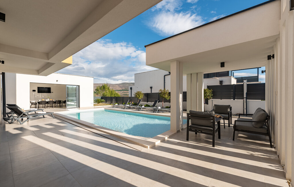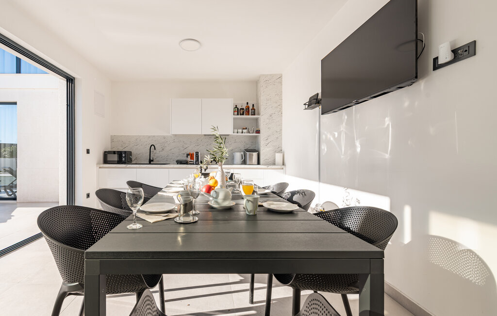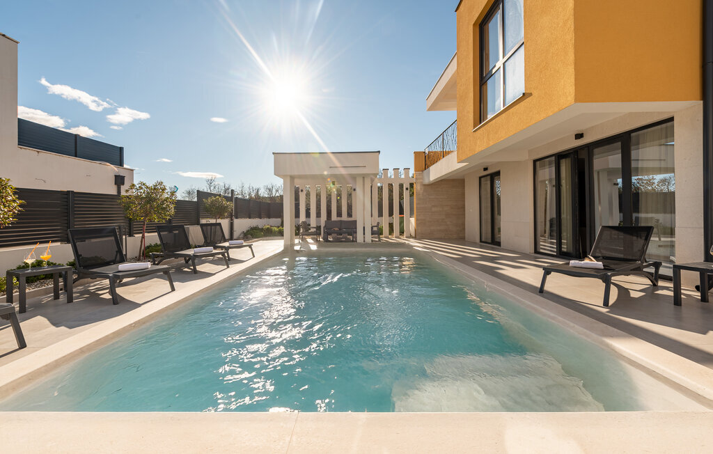 Le matin, sortez pieds nus sur votre terrasse ensoleillée et rafraîchissez-vous à votre guise dans la magnifique piscine à l'abri des regards. Servez-vous des boissons fraîches à l'ombre et célébrez le temps passé ensemble avec des soirées barbecue pleines d'ambiance.
