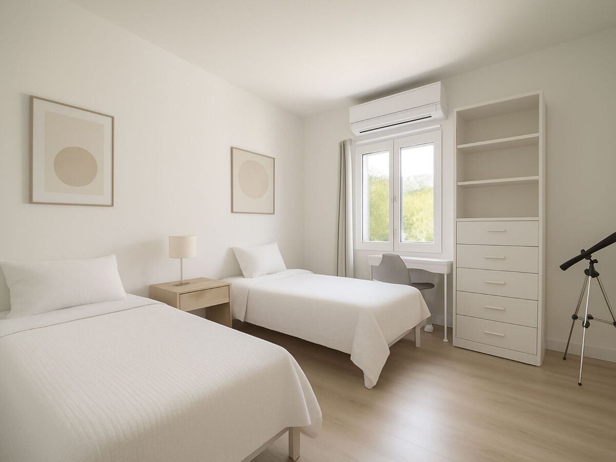 1 chambre double avec 2 lits (90 cm, longueur 200 cm), air-conditionné et chauffage à air chaud.