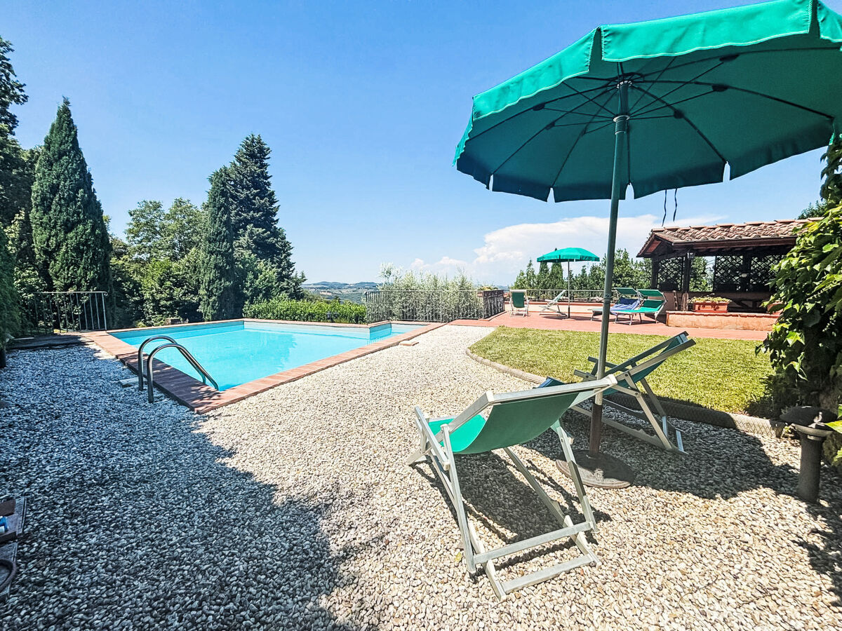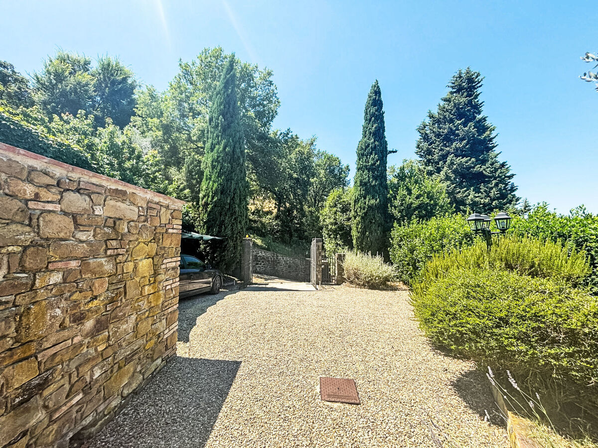 À 14 km du centre de Greve in Chianti, à 20 km du centre de Firenze, situation tranquille, ensoleillée, surélevée sur une colline, dans la verdure.