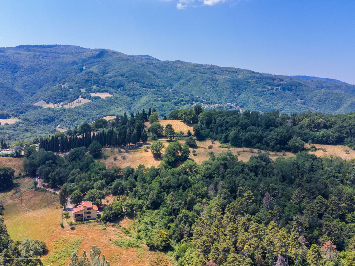 À 5.6 km du centre de Vicchio, à 40 km du centre de Firenze, situation isolée, tranquille, ensoleillée sur une colline, à 25 km du lac, dans la verdure.