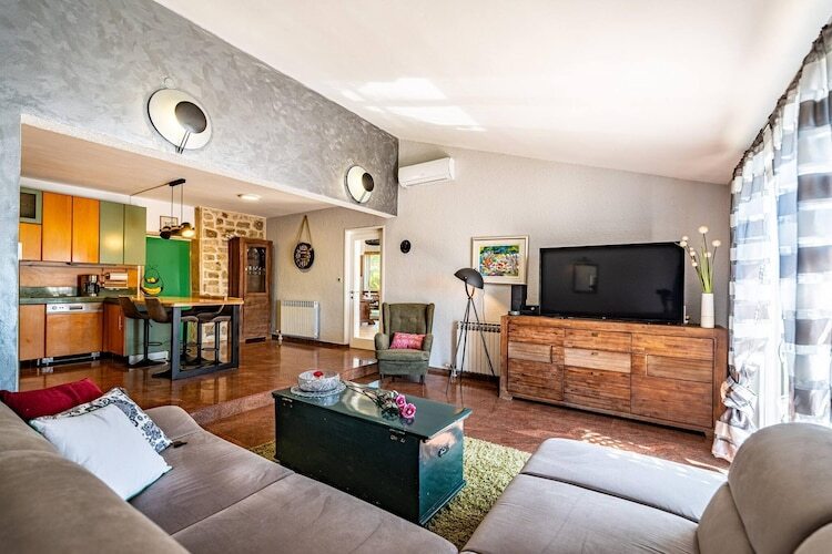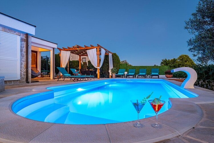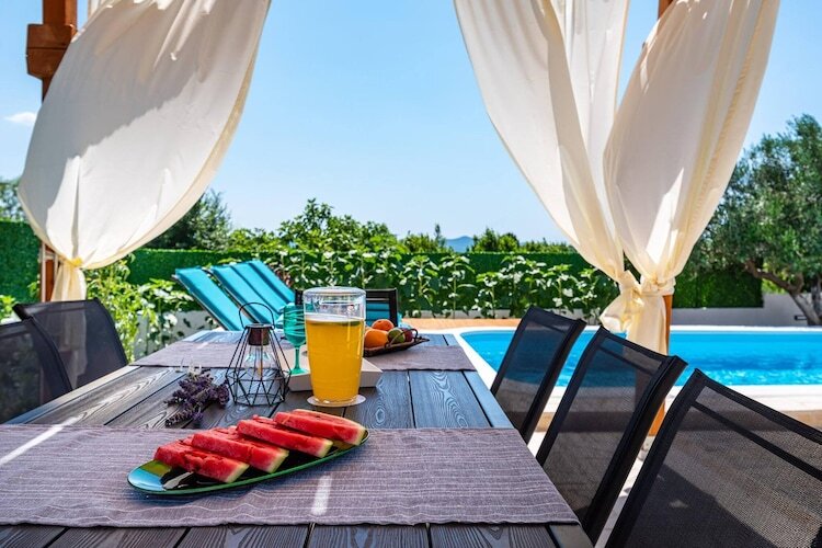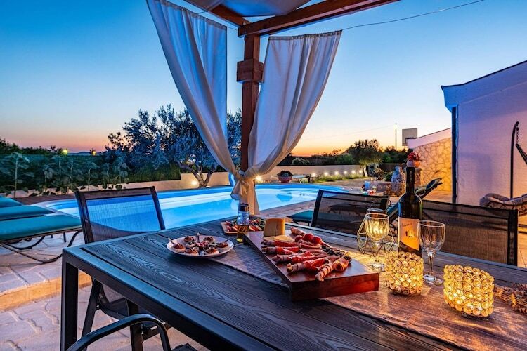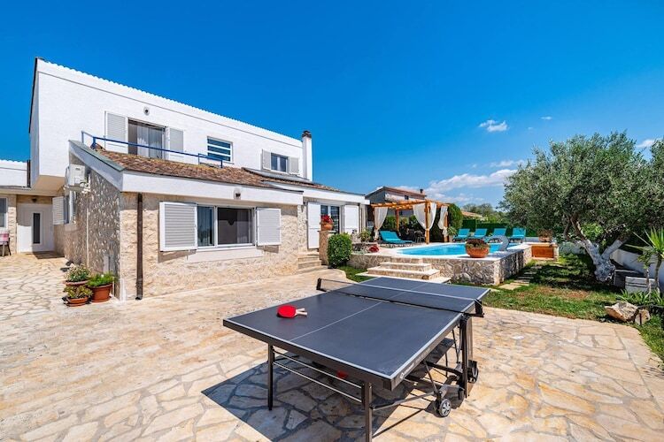 Villa Elia est située dans un quartier résidentiel calme de Zadar, au sommet d'une colline verdoyante qui surplombe la ville. Avec sa vue panoramique sur la mer et sa charmante piscine privée, elle peut accueillir confortablement 2 familles ou un groupe de jusqu'à 9 personnes. Sélectionnée par My Dalmatia pour son emplacement de choix et un hôte formidable qui vous fera sentir comme chez vous. Votre maison de vacances se compose d'une taverne charmante avec cheminée en pierre, un grand séjour/salle à manger, une cuisine ouverte entièrement équipée, 2 salles de bains plus des toilettes supplémentaires et 5 chambres. De plus, vous avez un accès direct à un balcon qui offre une vue spectaculaire sur la ville de Zadar, la mer Adriatique et ses îles. À l'extérieur, vous trouverez votre piscine privée, qui comprend un système de contre-courant et une fonction hydro-massage. À côté, il y a un jardin avec une terrasse couverte agréable et une table à manger où vous pouvez profiter de vos repas en plein air. Si vous recherchez des activités amusantes à faire autour de la maison, il y a du tennis de table, un terrain de basket et un trampoline. Un espace de stationnement suffisant et sécurisé est prévu pour les invités, ainsi qu'une connexion internet Wi-Fi rapide. La plage la plus proche se trouve à seulement 4 km, à peu près à la même distance que la vieille ville de Zadar où vous pouvez explorer ses ruelles étroites, voir les musées ou visiter des attractions célèbres comme l'Orgue de mer et Salutation au Soleil. Un restaurant et un magasin d'alimentation se trouvent juste en bas de la colline, à moins de 5 minutes de marche. Près de votre villa, vous trouverez également le parc-forêt de Musapstan, idéal pour courir et faire du vélo. Les parcs nationaux de Paklenica et les chutes de Krka peuvent tous deux être visités en moins d'une heure de route. Tout cela fait de cet endroit un lieu parfait pour profiter de vos prochaines vacances.