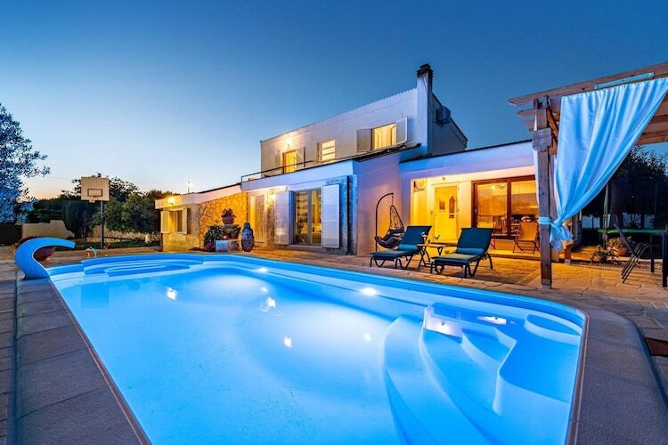cuisine ouverte(foyer(gaz), bouilloire, four, micro ondes, lave-vaisselle , réfrigérateur, congélateur, , Wine glasses), salle à manger-salon(canapé-lit double, TV(cable, écran plat, satellite), table, coin salon), chambre(lit double grande taille), chambre(lit double grande taille), chambre(lit double), chambre(Lit superposé), chambre(lit simple), salle de bains(douche, lavabo, WC, bidet), salle de bains(baignoire, lavabo, WC, bidet), WC(lavabo, WC), Accès Internet, Meubles de jardin, cheminée, lit bébé, lave-linge , balcon, climatisation, terrasse, jardin, barbecue(charbon de bois), parking, trampoline, piscine(privé), tennis de table/ping-pong, chaise haute, table à repasser, fer à repasser, sèche-cheveux, séchoir, crib(free)