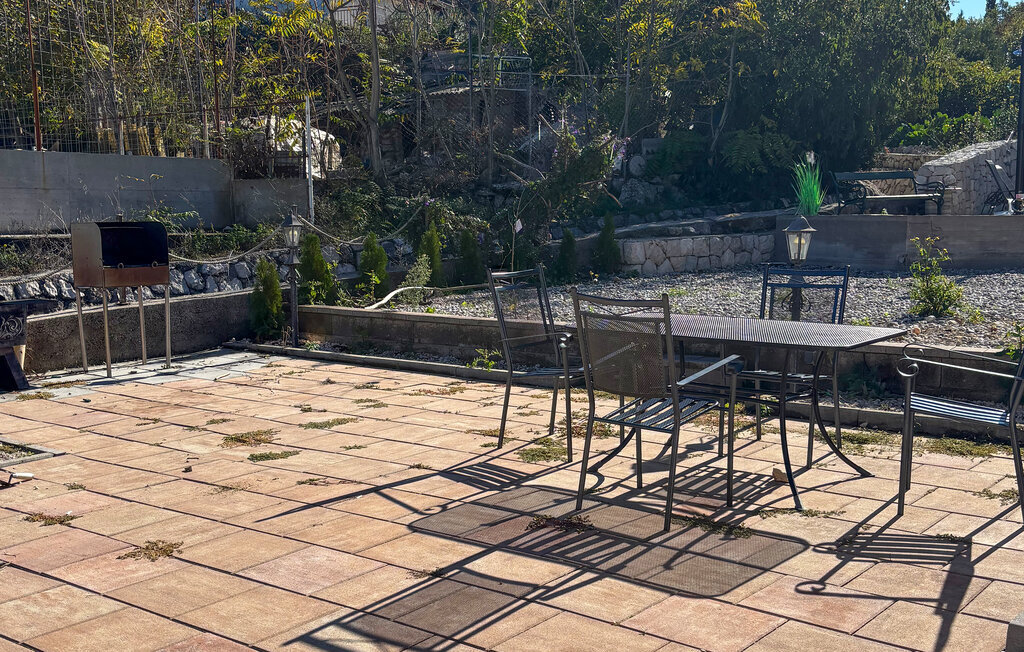 Dans le jardin, une piscine vous invite à passer des heures de détente en vous baignant. Profitez de la belle vue sur la végétation méditerranéenne ou faites une partie de water-polo. Vous pouvez manger ensemble à la table à manger sur la terrasse ou faire des plans pour le lendemain.