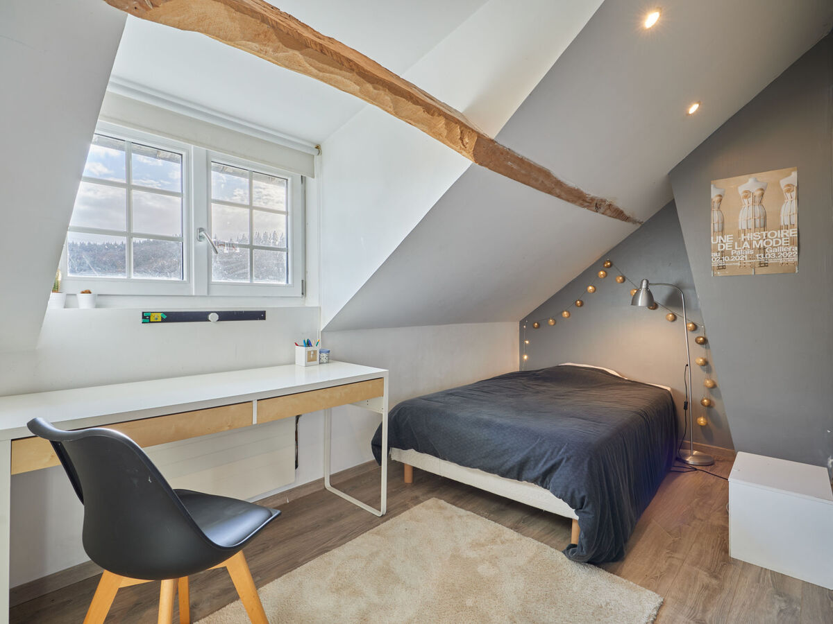 À l'étage supérieur: 1 chambre, mansardée avec 1 lit (120 cm, longueur 190 cm).