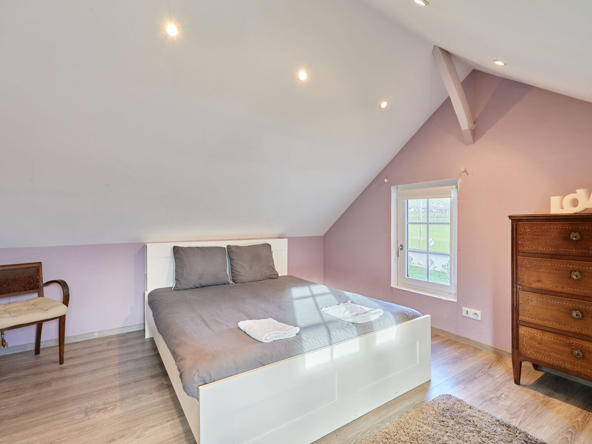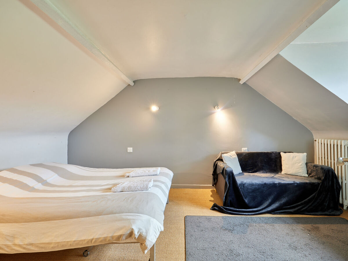 1 chambre, mansardée avec 1 grand-lit (140 cm, longueur 190 cm).