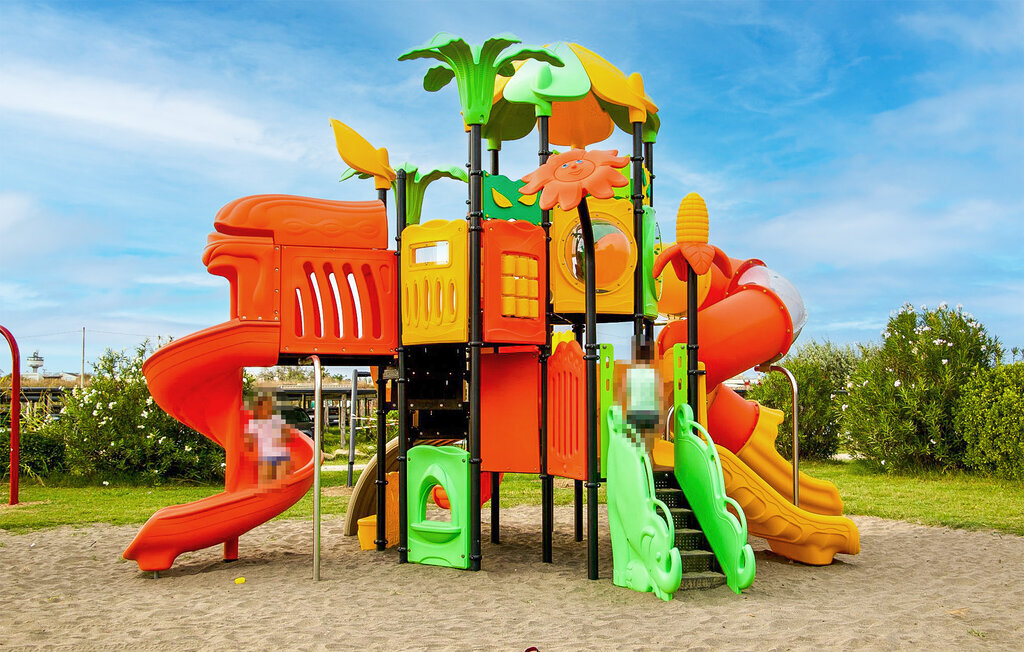 Votre véranda accueillante est l'endroit idéal pour prendre le petit-déjeuner avant de vous rafraîchir dans la mer ou dans la grande piscine commune. Nouez des contacts sympathiques en jouant au basket-ball, laissez vos enfants s'amuser sur l'aire de jeux et terminez la journée en dégustant un bon barbecue.