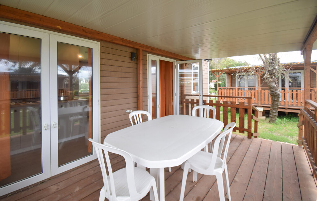 Votre véranda accueillante est l'endroit idéal pour prendre le petit-déjeuner avant de vous rafraîchir dans la mer ou dans la grande piscine commune. Nouez des contacts sympathiques en jouant au basket-ball, laissez vos enfants s'amuser sur l'aire de jeux et terminez la journée en dégustant un bon barbecue.