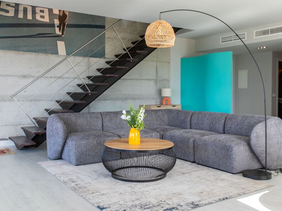 Clair, aménagement très moderne: séjour orientée sud-ouest avec Télévision numérique.