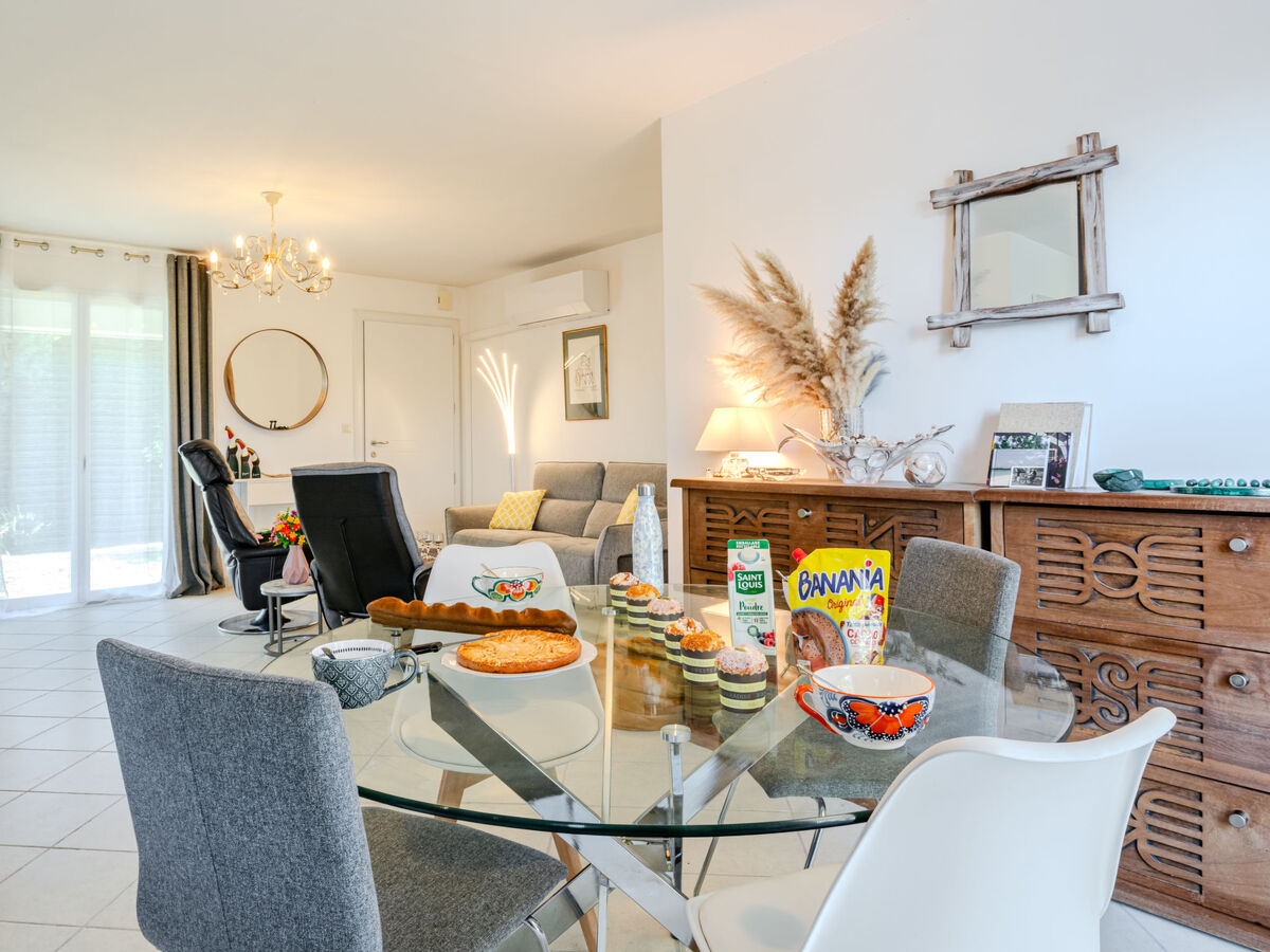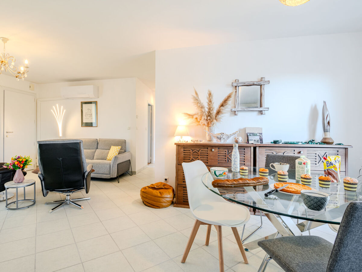 Aménagement agréable et moderne: séjour/salle à manger avec TV (écran plat), air-conditionné.