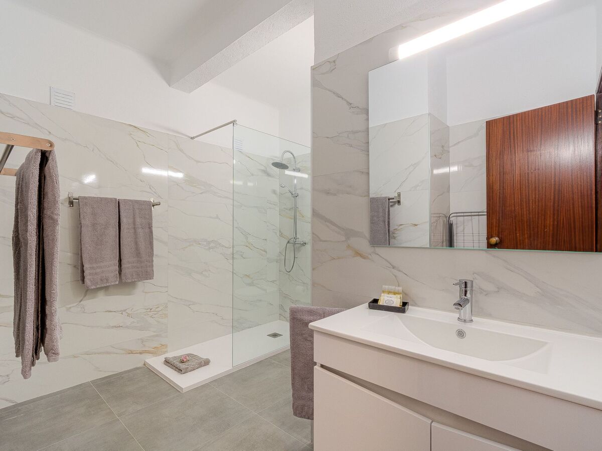 1 chambre avec 1 lit (90 cm, longueur 200 cm), bain/WC, air-conditionné et chauffage à air chaud.